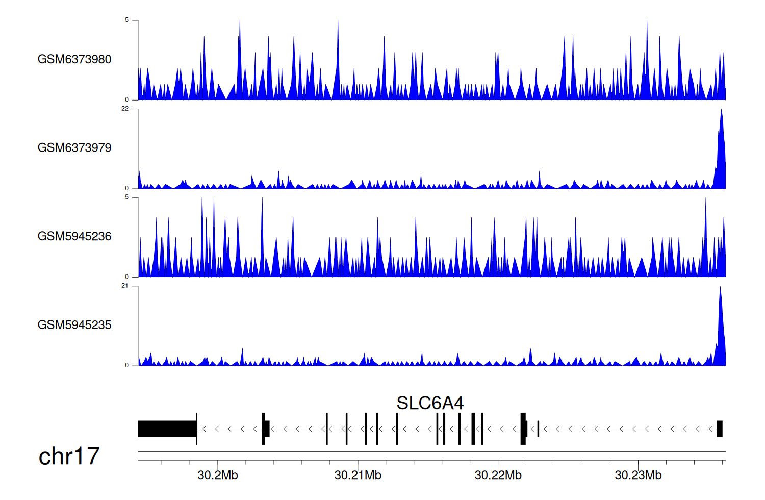 > Dataset: GSE246060 - SLC6A4 peak across samples