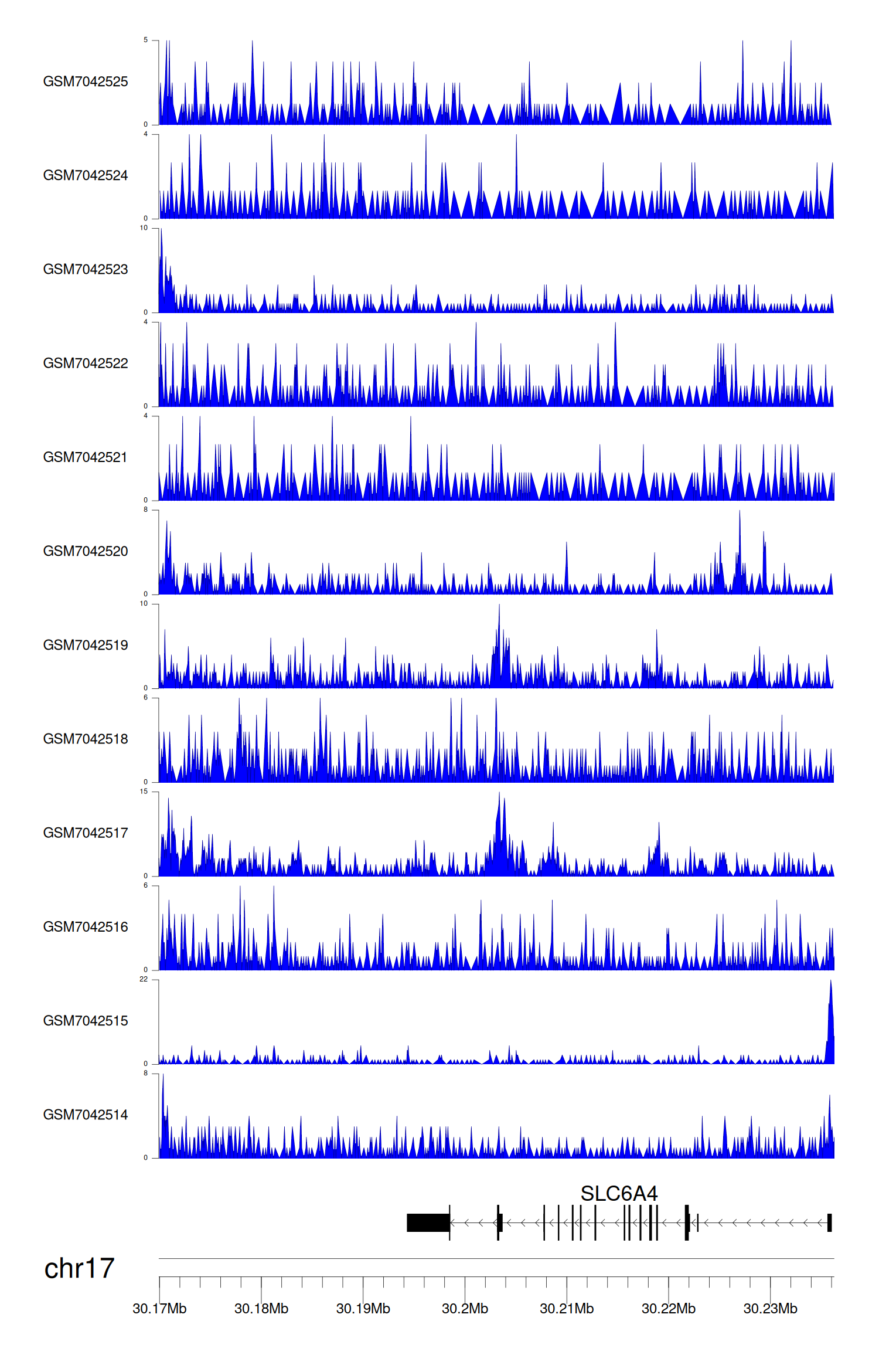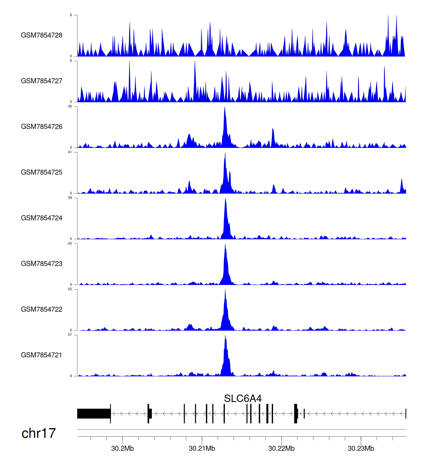 > Dataset: GSE198334 - SLC6A4 peak across samples