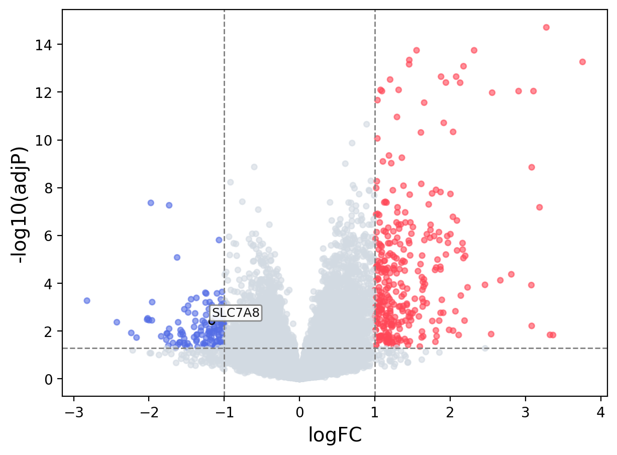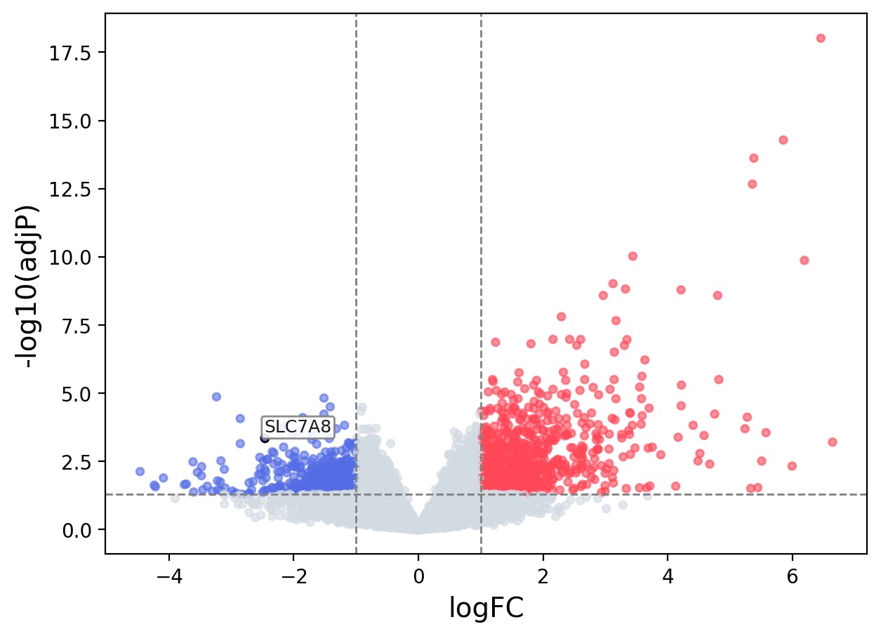 When the query gene is differentially changed in the dataset, a volcano/bar plot will be displayed.