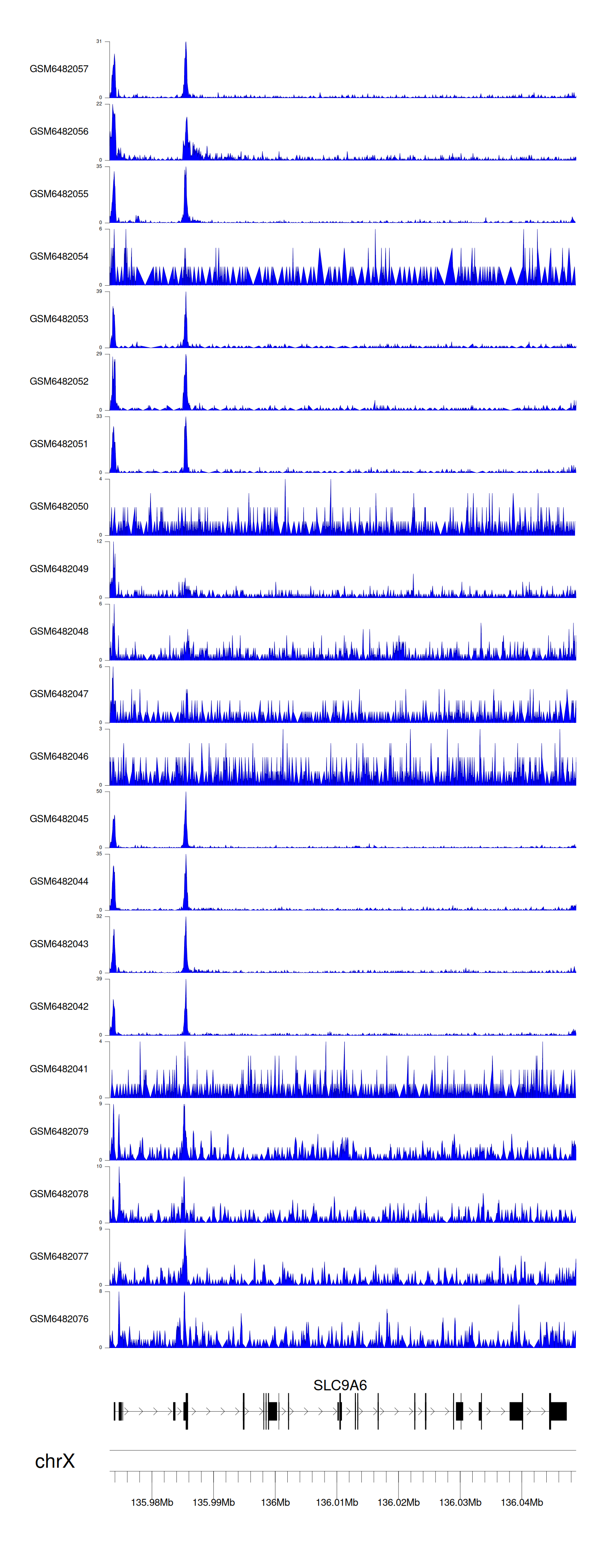 > Dataset: GSE165705 - SLC9A6 peak across samples
