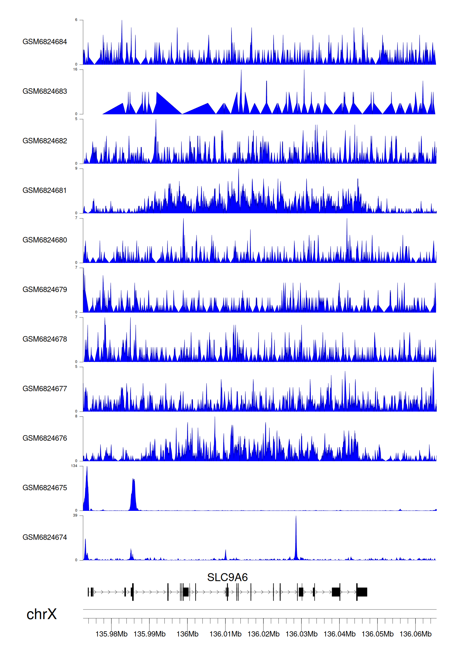 > Dataset: GSE144329 - SLC9A6 peak across samples