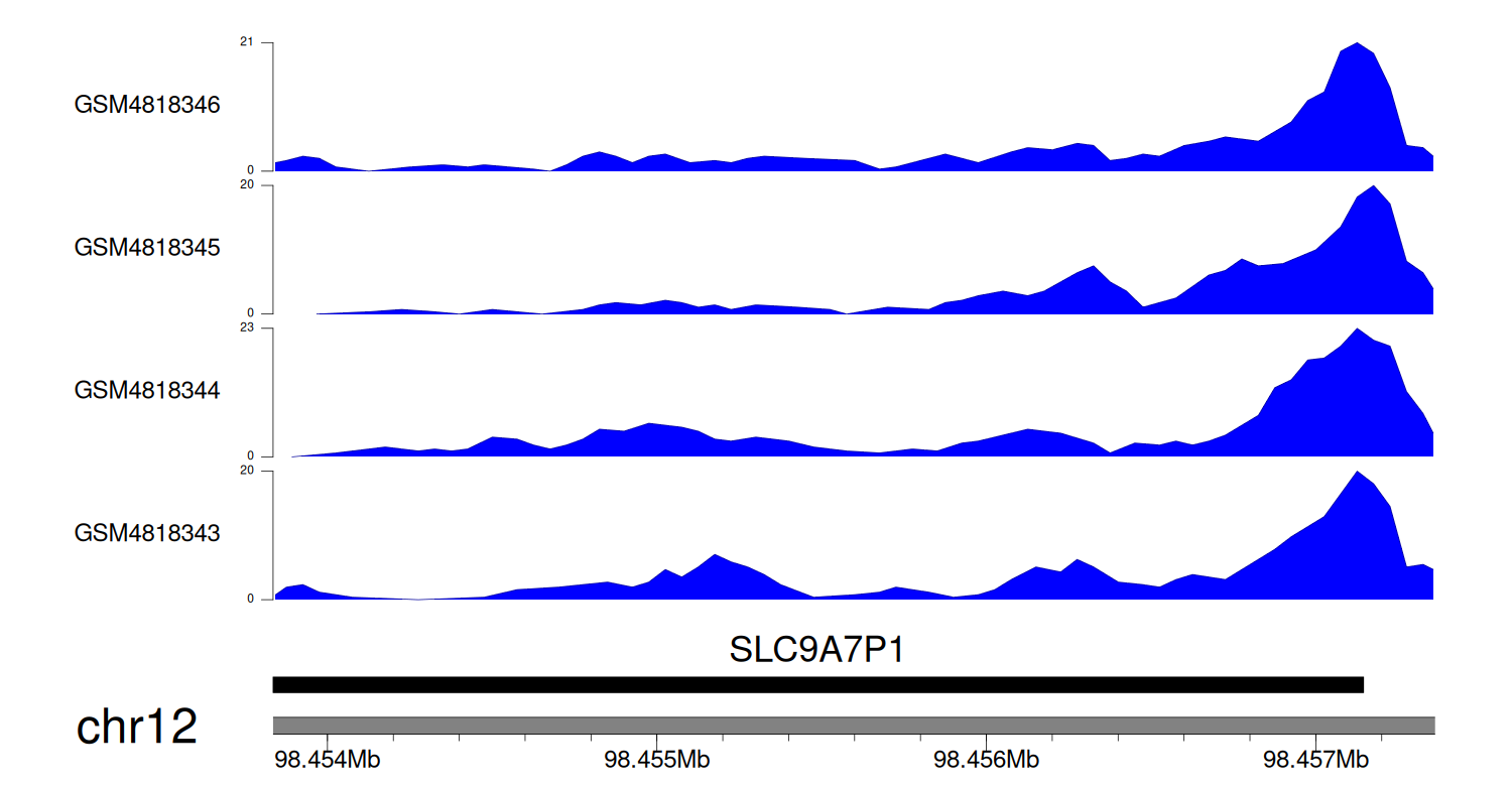 > Dataset: GSE131257 - SLC9A7P1 peak across samples
