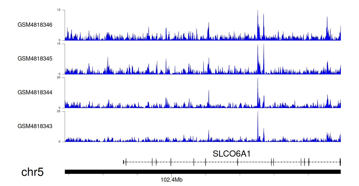 > Dataset: GSE131257 - SLCO6A1 peak across samples