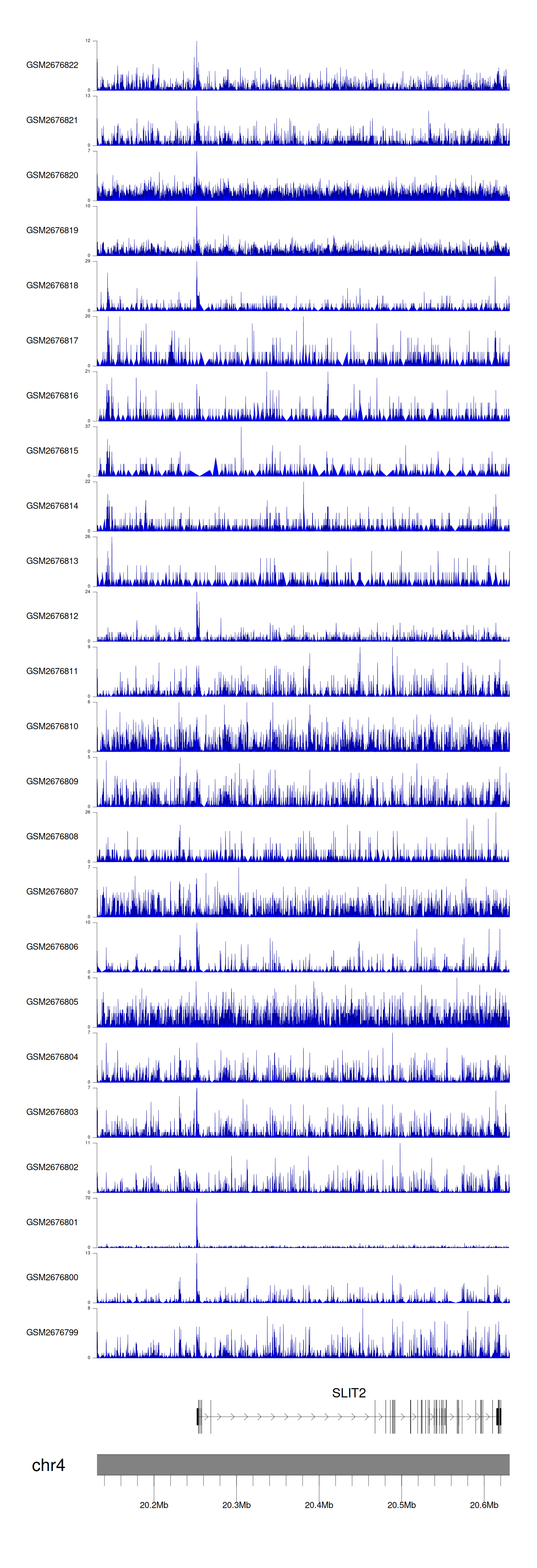 > Dataset: GSE100376 - SLIT2 peak across samples