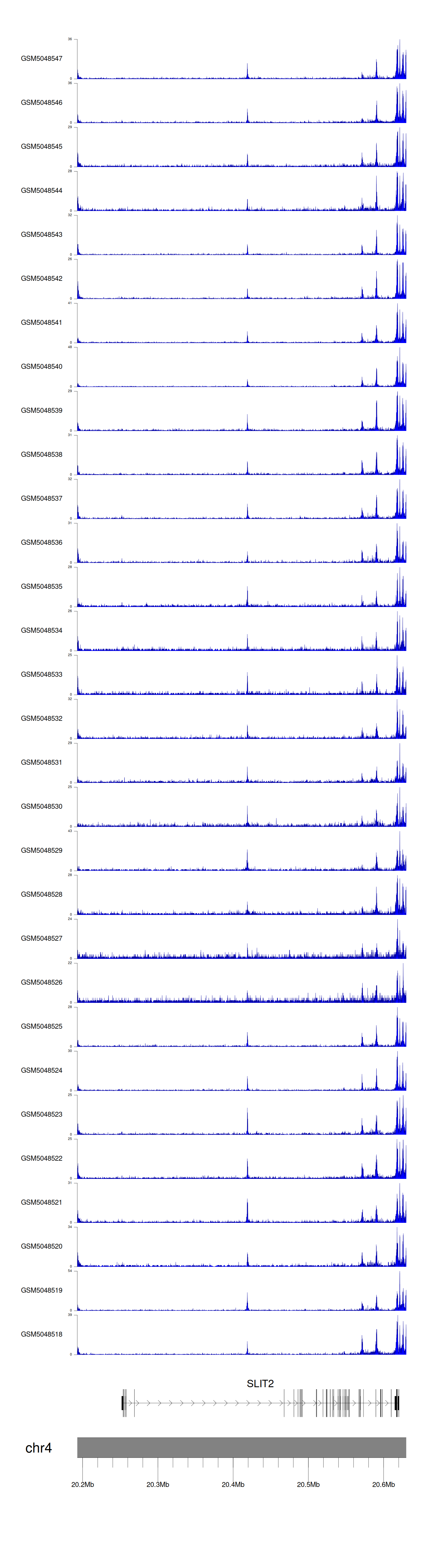 > Dataset: GSE30738 - SLIT2 peak across samples