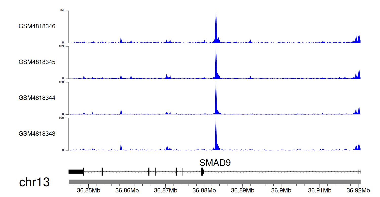 > Dataset: GSE131257 - SMAD9 peak across samples