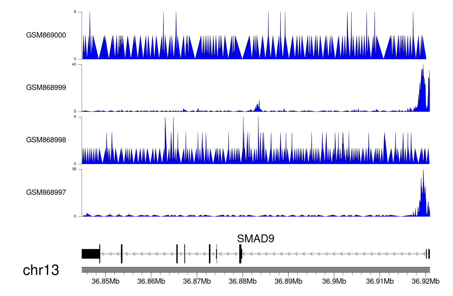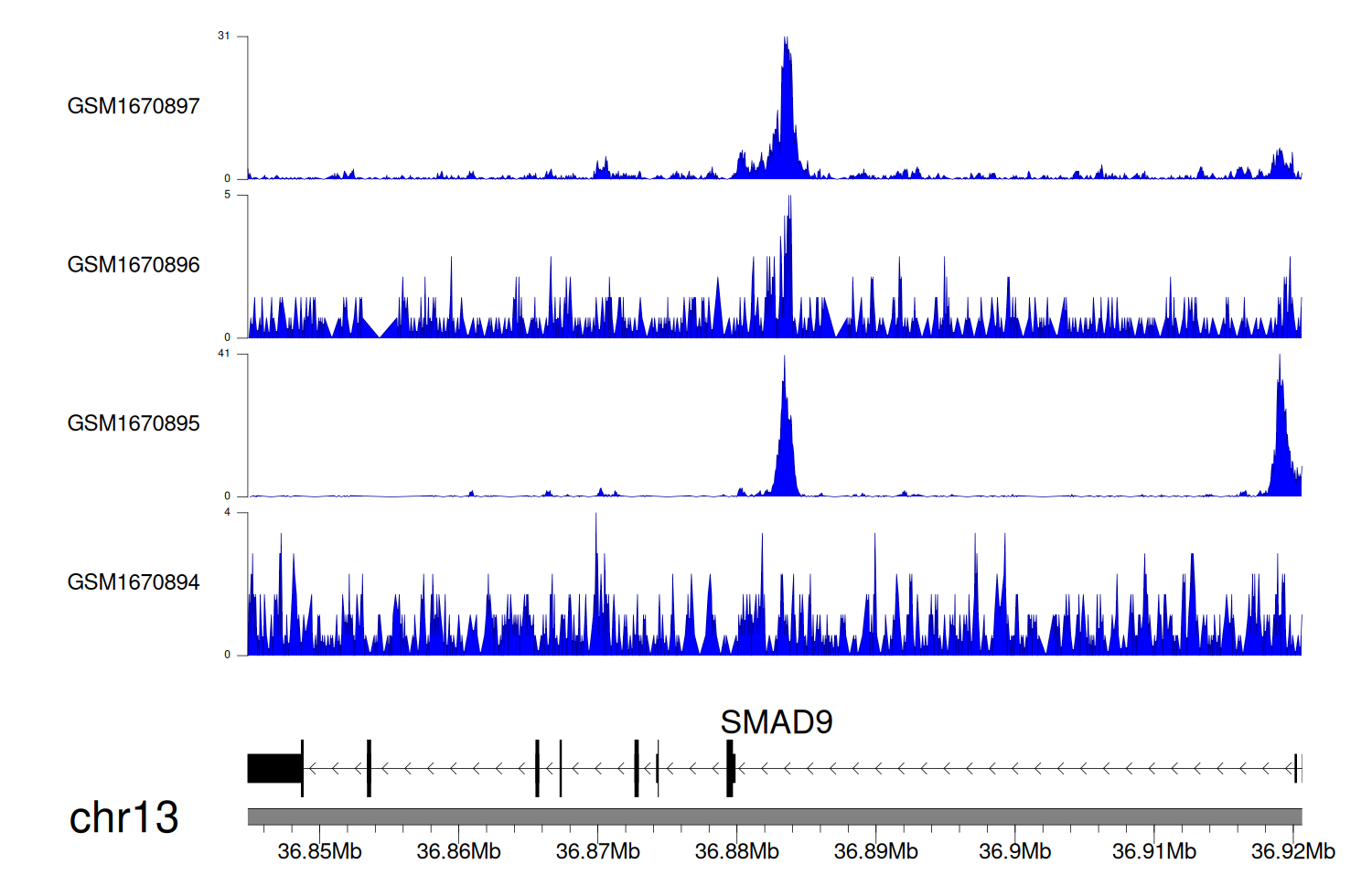 > Dataset: GSE68402 - SMAD9 peak across samples