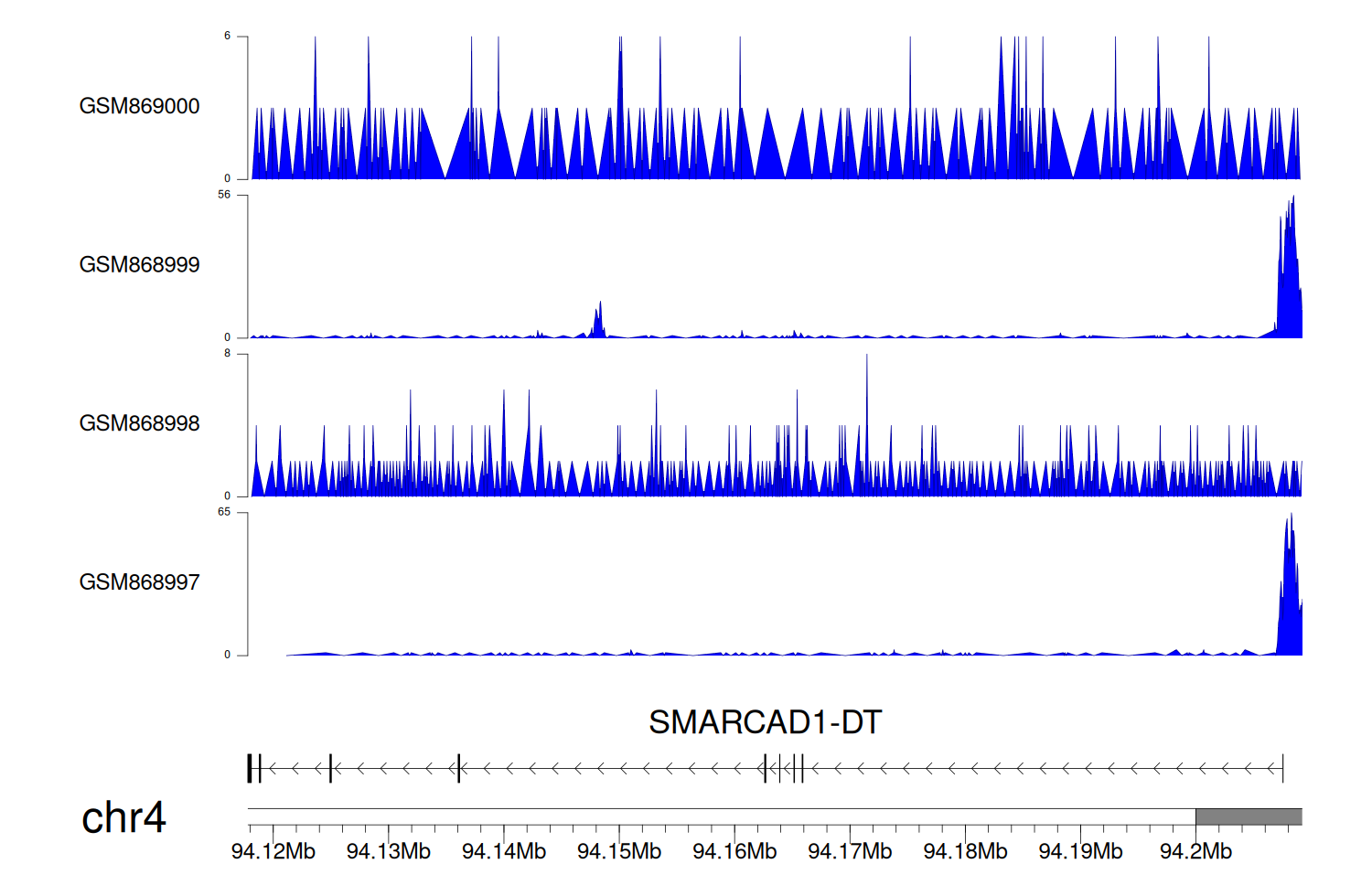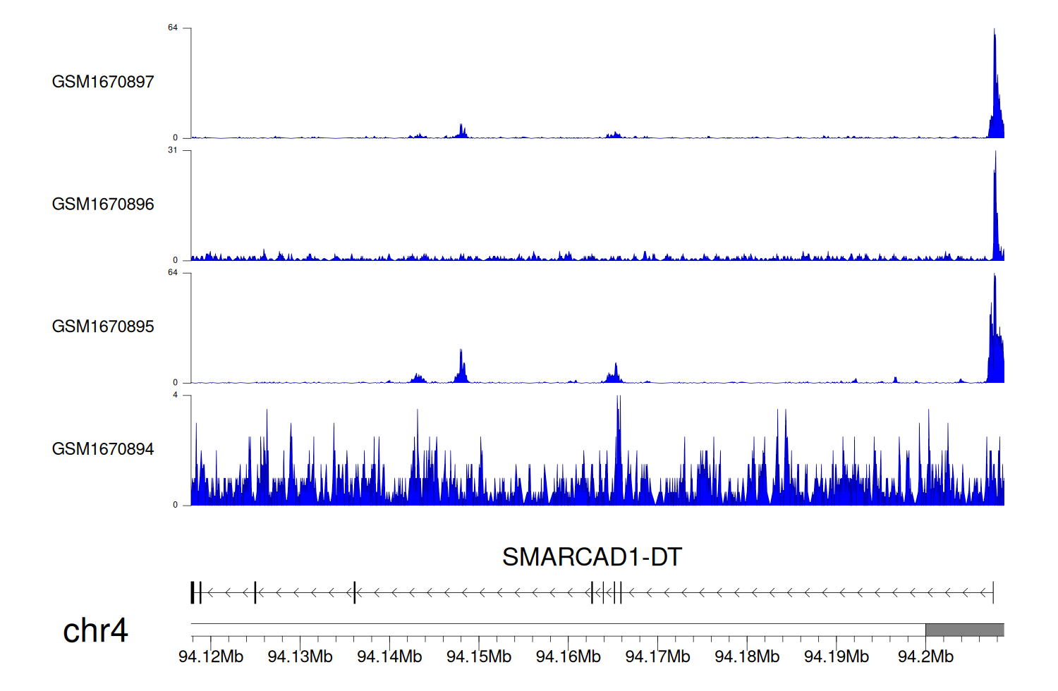 > Dataset: GSE68402 - SMARCAD1-DT peak across samples