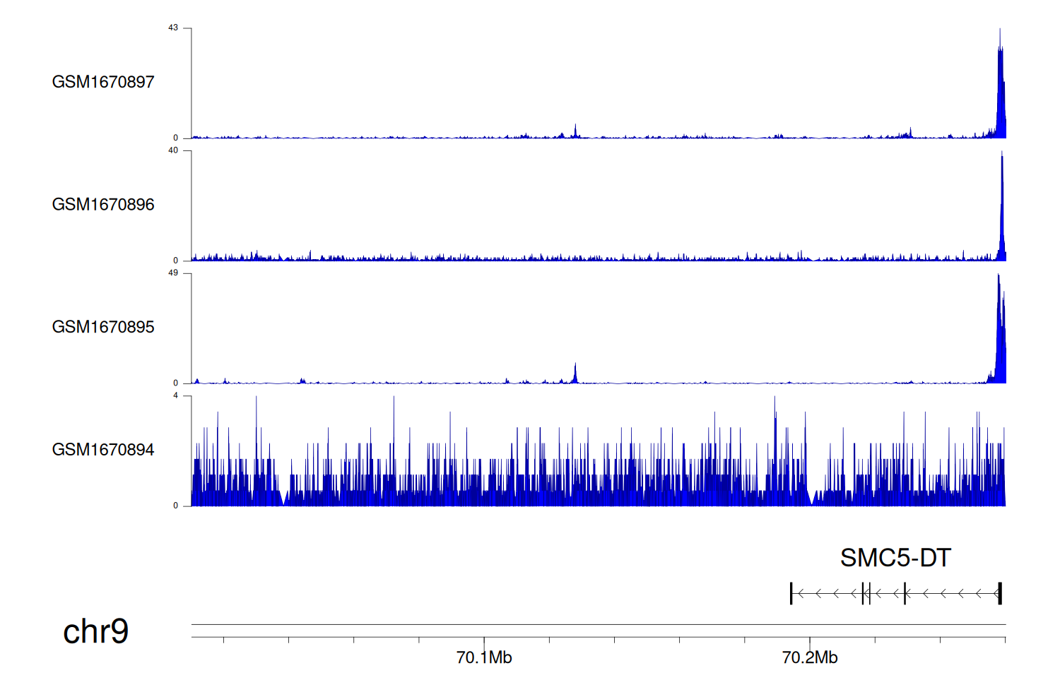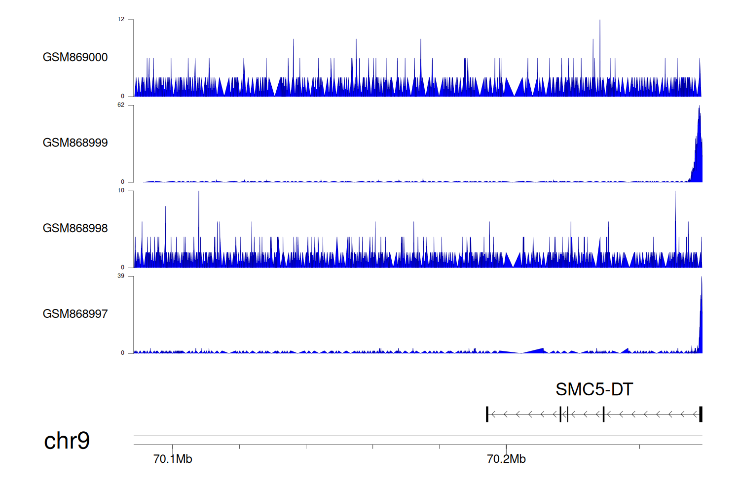 > Dataset: GSE68402 - SMC5-DT peak across samples