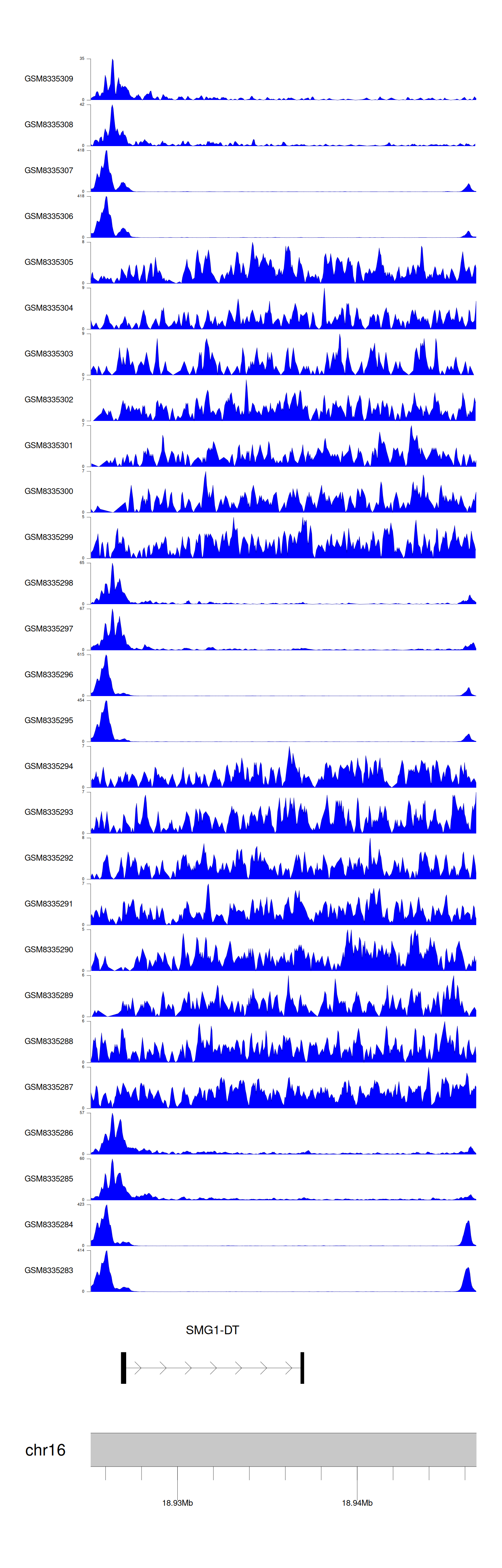 > Dataset: GSE270130 - SMG1-DT peak across samples