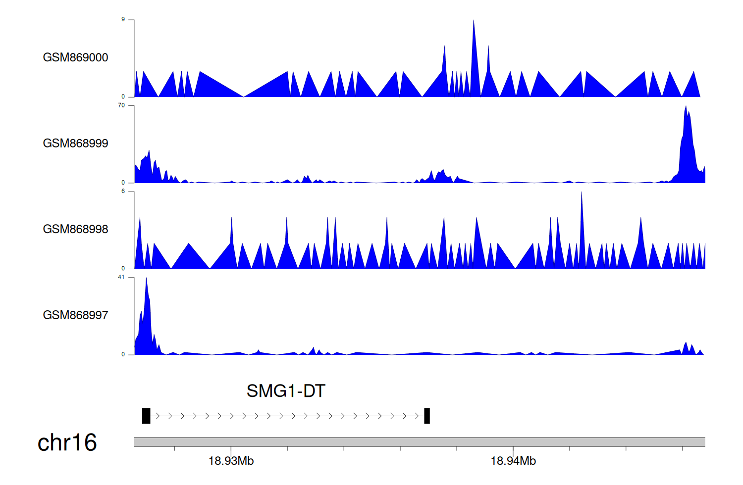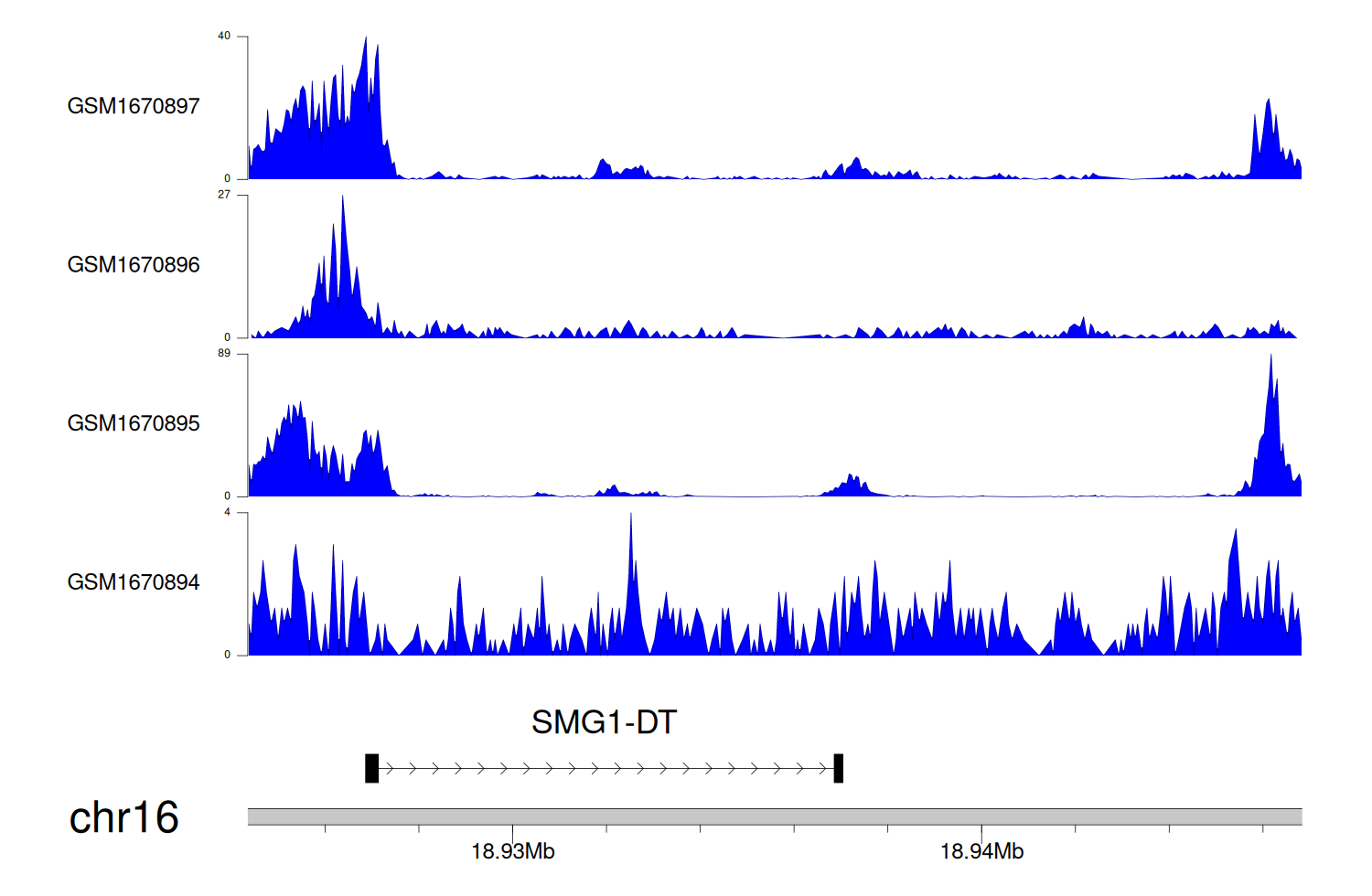 > Dataset: GSE68402 - SMG1-DT peak across samples