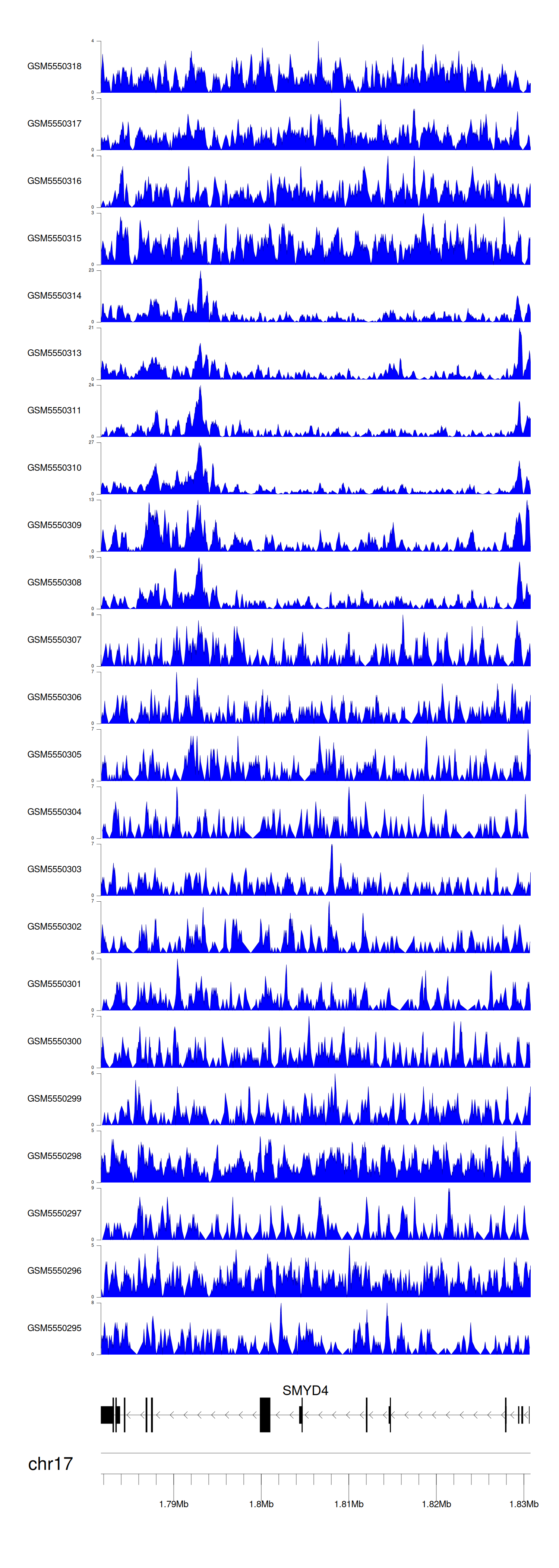> Dataset: GSE143026 - SMYD4 peak across samples