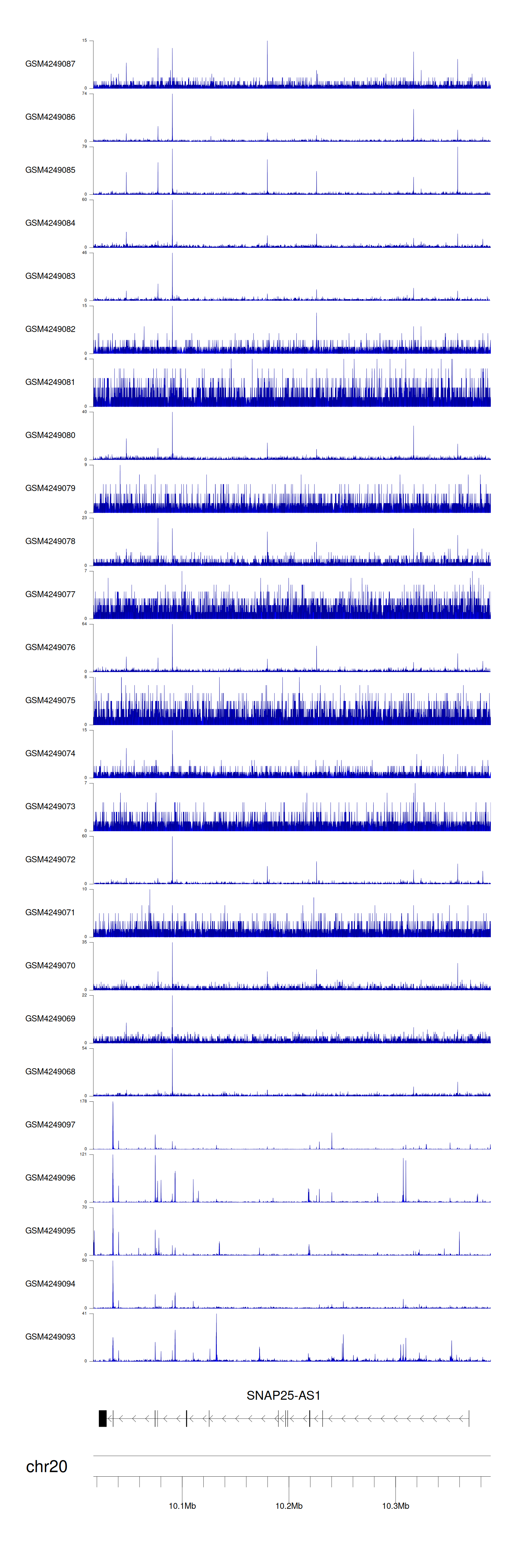 > Dataset: GSE143026 - SNAP25-AS1 peak across samples