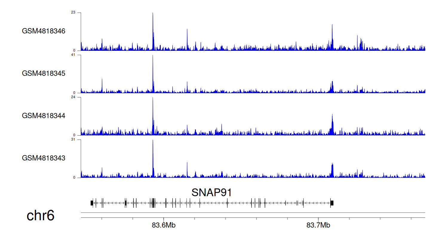 > Dataset: GSE131257 - SNAP91 peak across samples