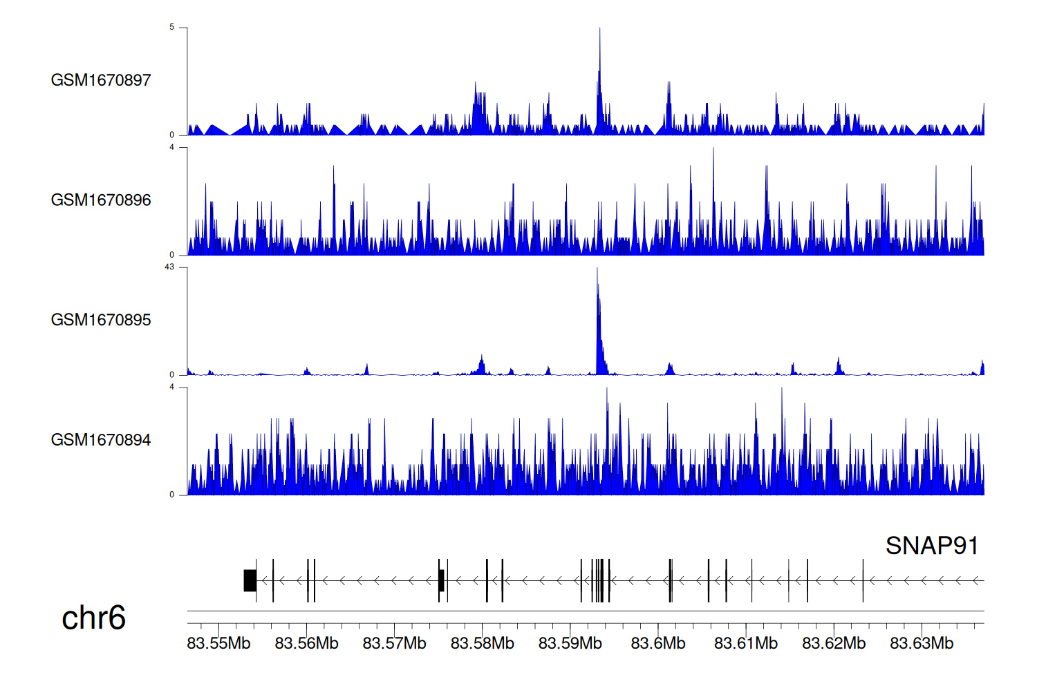 > Dataset: GSE68402 - SNAP91 peak across samples
