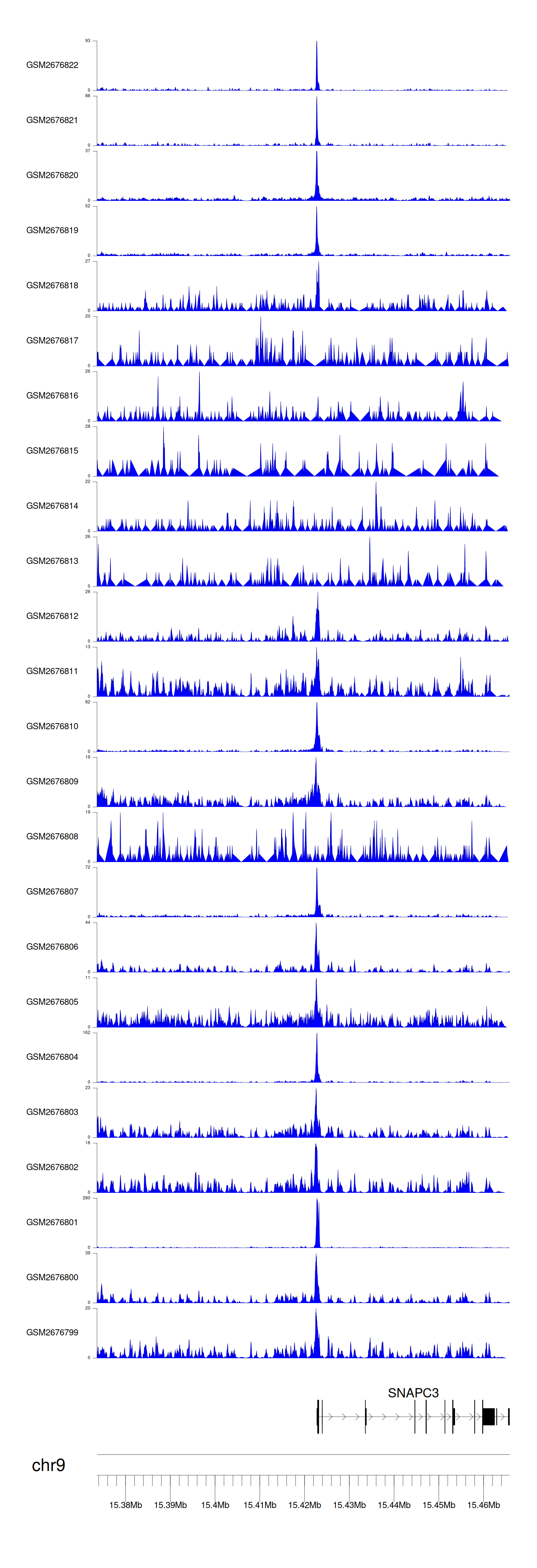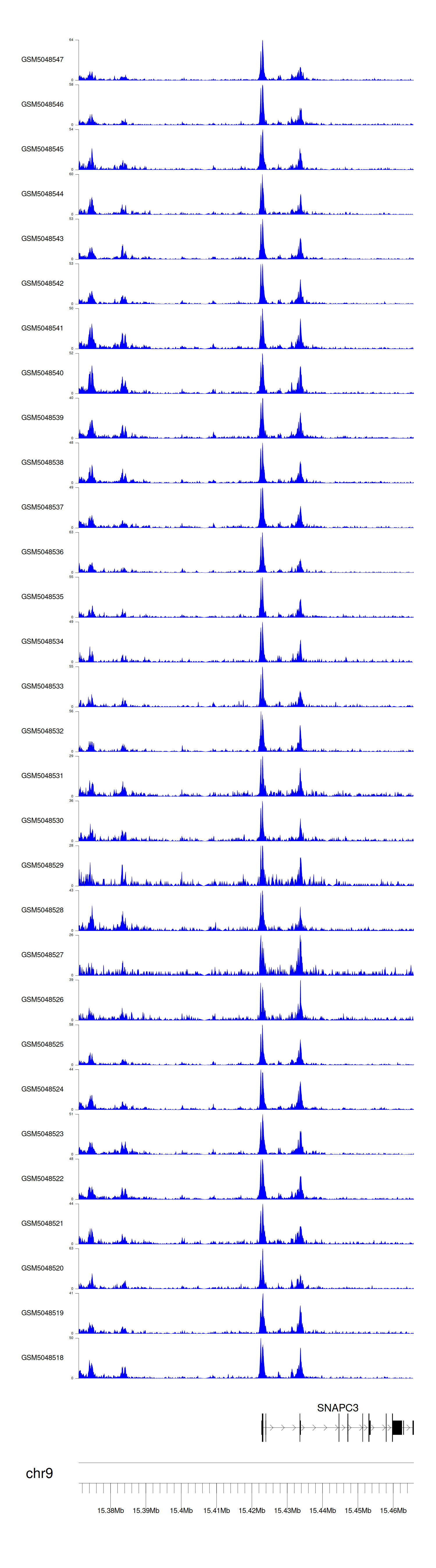 > Dataset: GSE100376 - SNAPC3 peak across samples