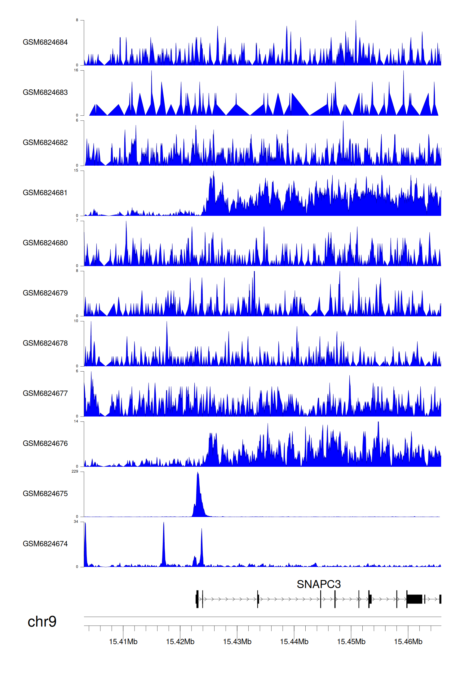 > Dataset: GSE165703 - SNAPC3 peak across samples