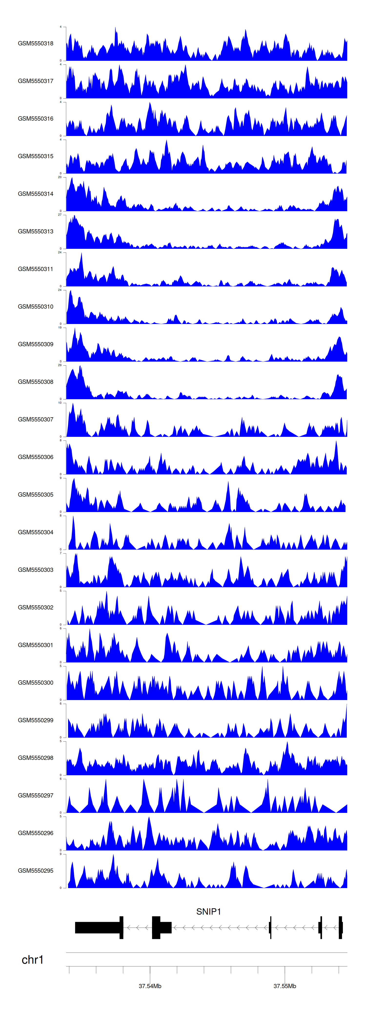 > Dataset: GSE143026 - SNIP1 peak across samples