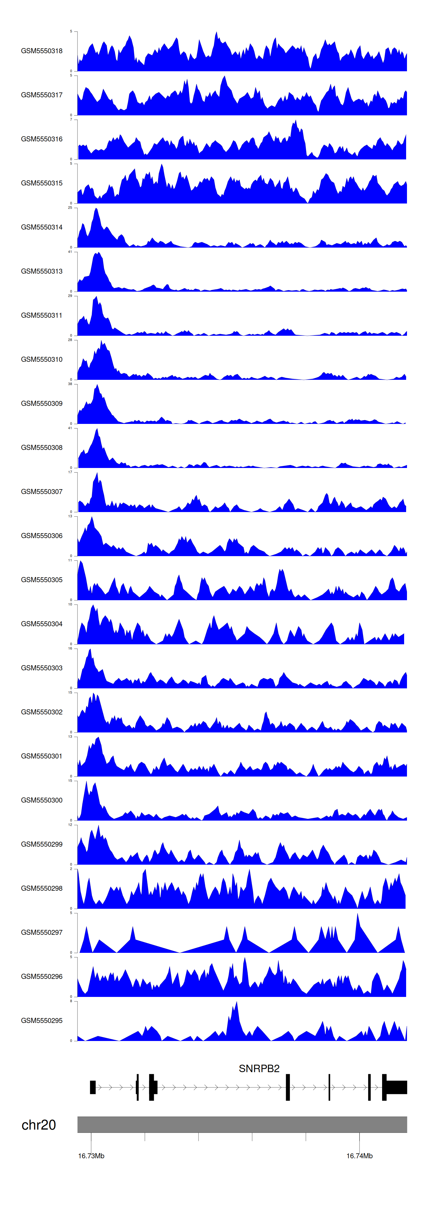 > Dataset: GSE143026 - SNRPB2 peak across samples