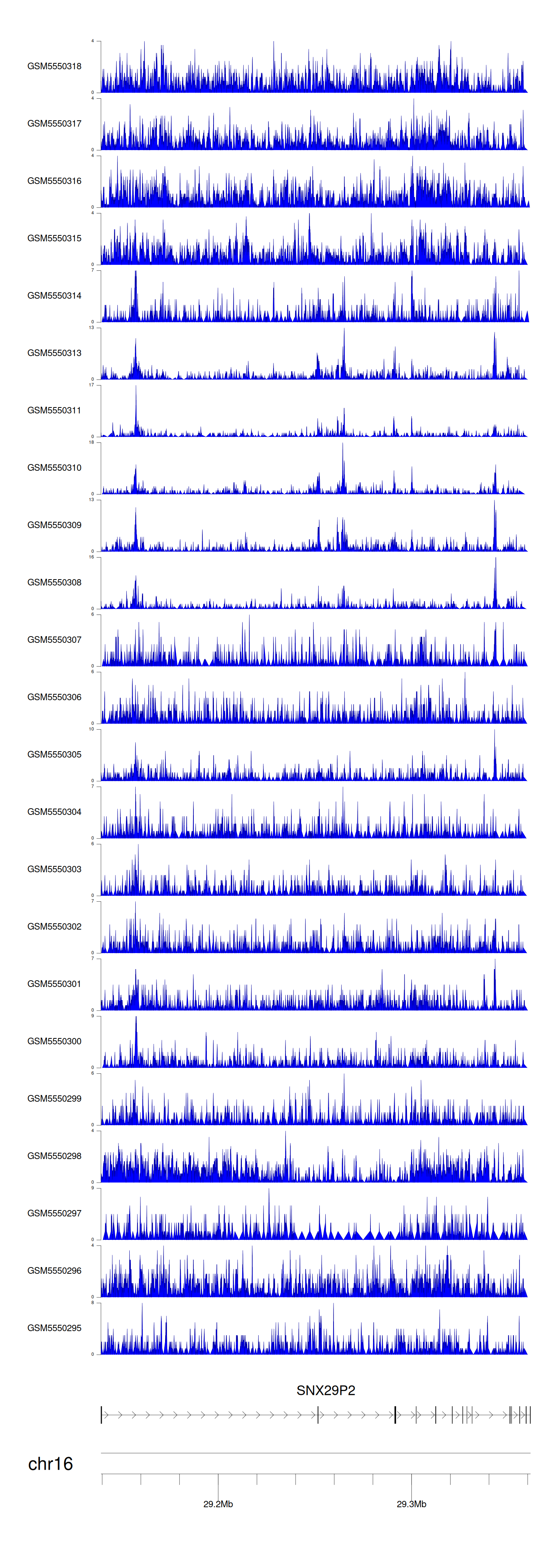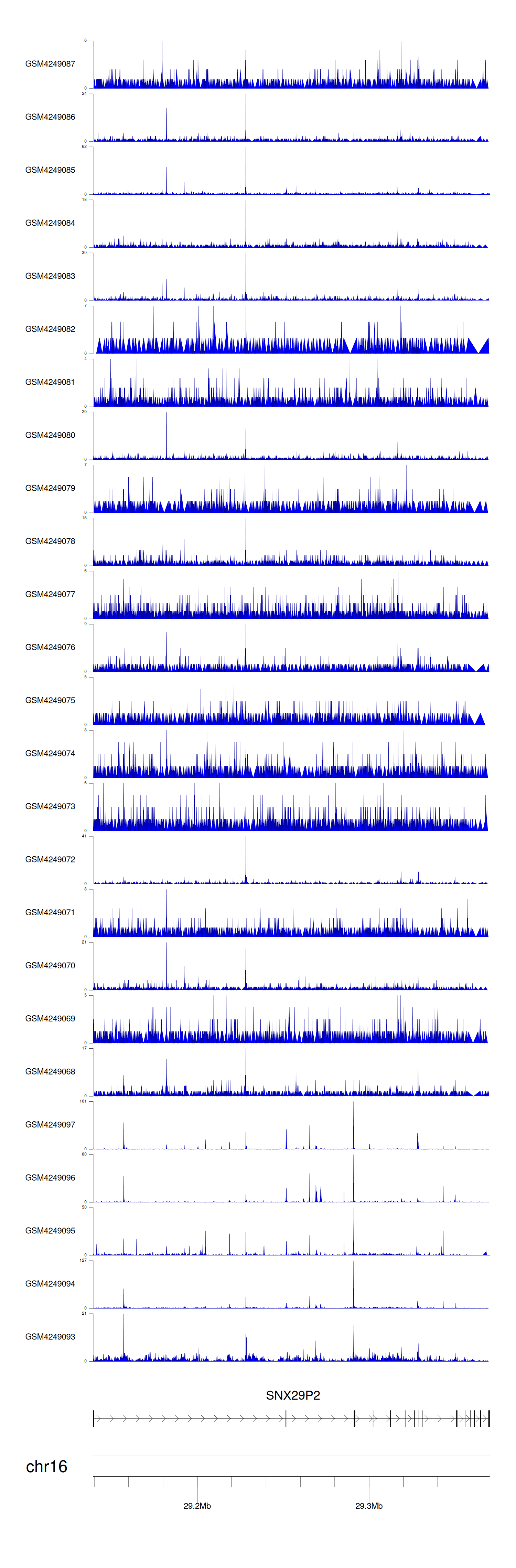 > Dataset: GSE143026 - SNX29P2 peak across samples