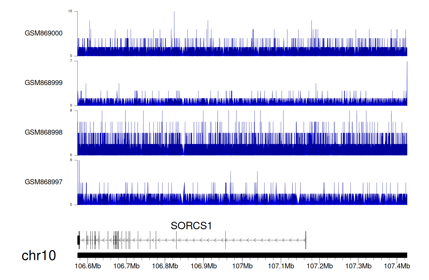 > Dataset: GSE68402 - SORCS1 peak across samples