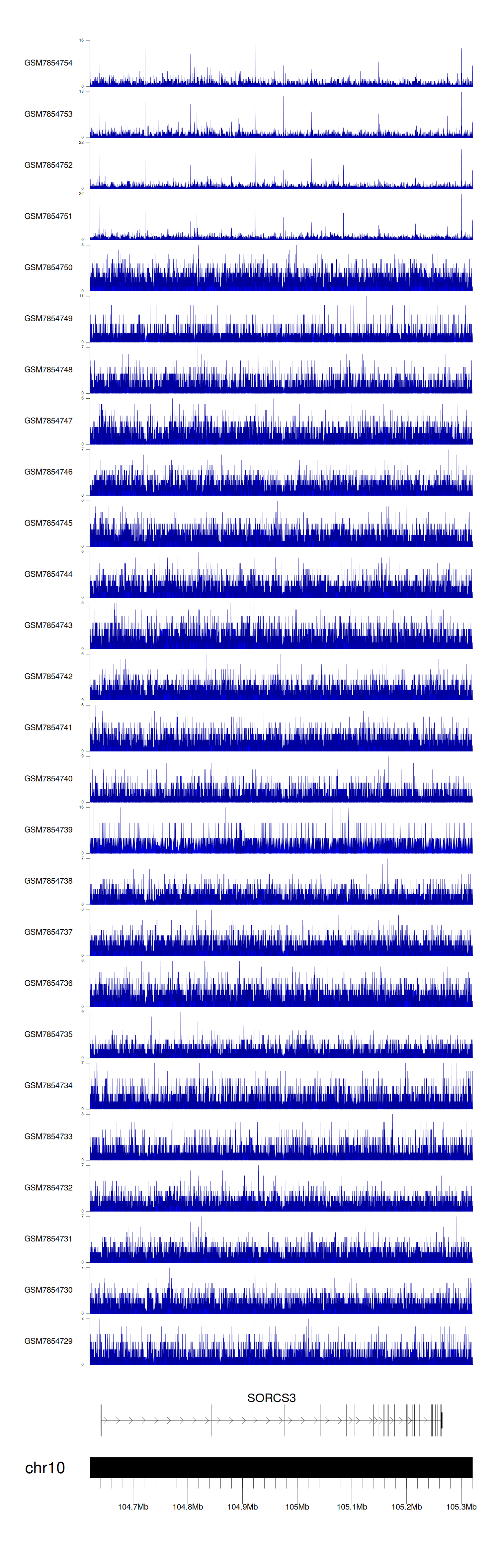 > Dataset: GSE246060 - SORCS3 peak across samples