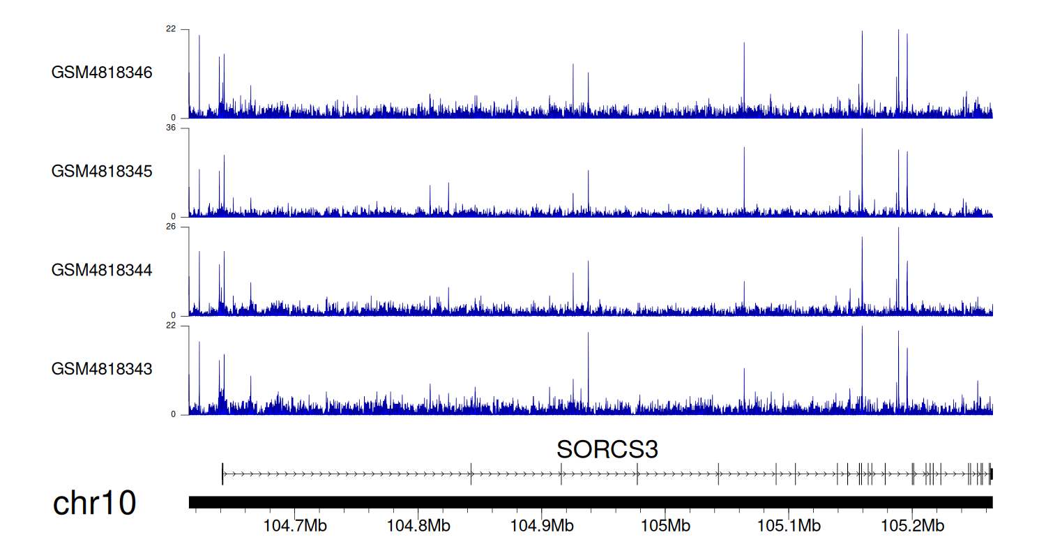 > Dataset: GSE270130 - SORCS3 peak across samples