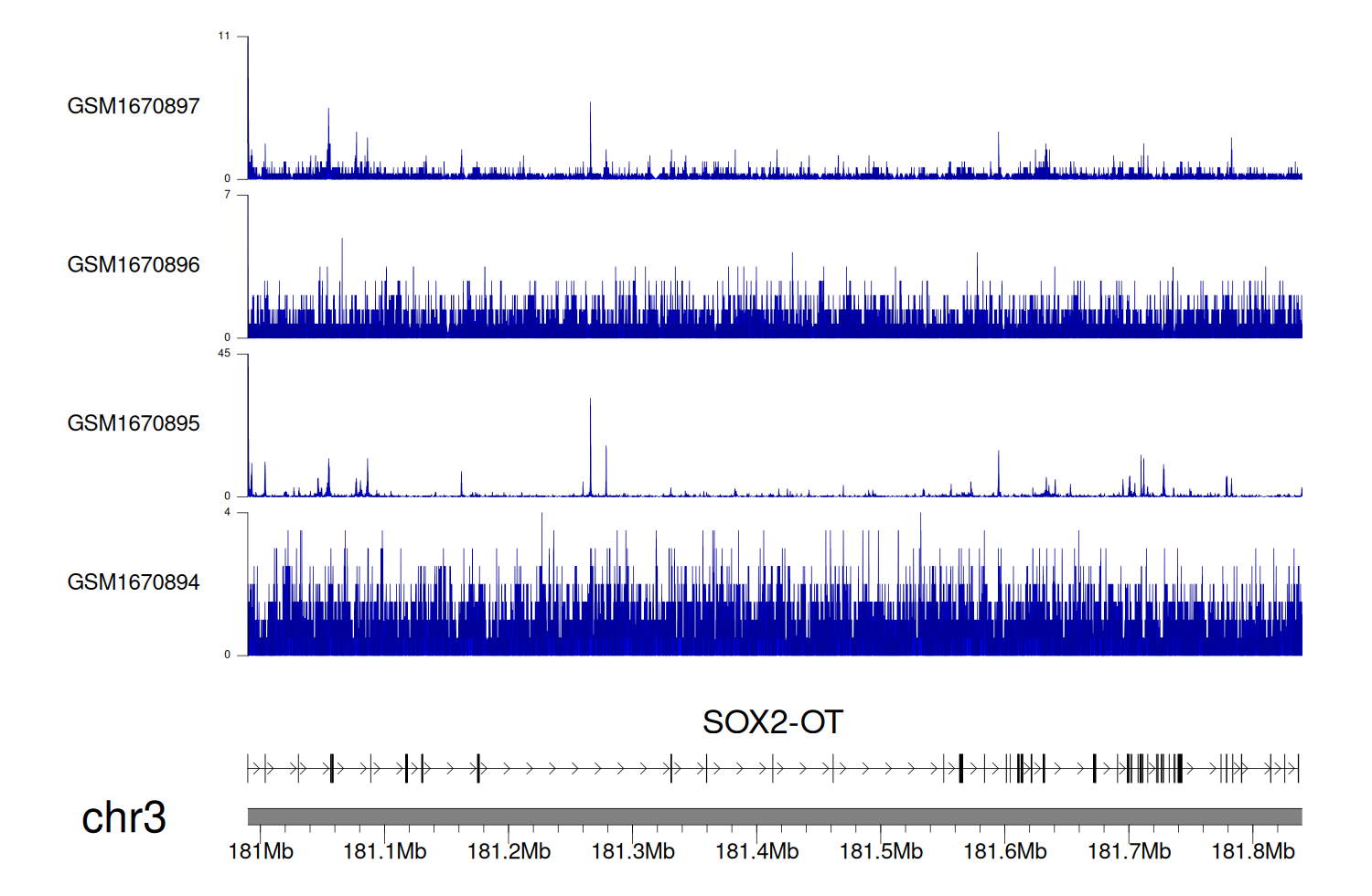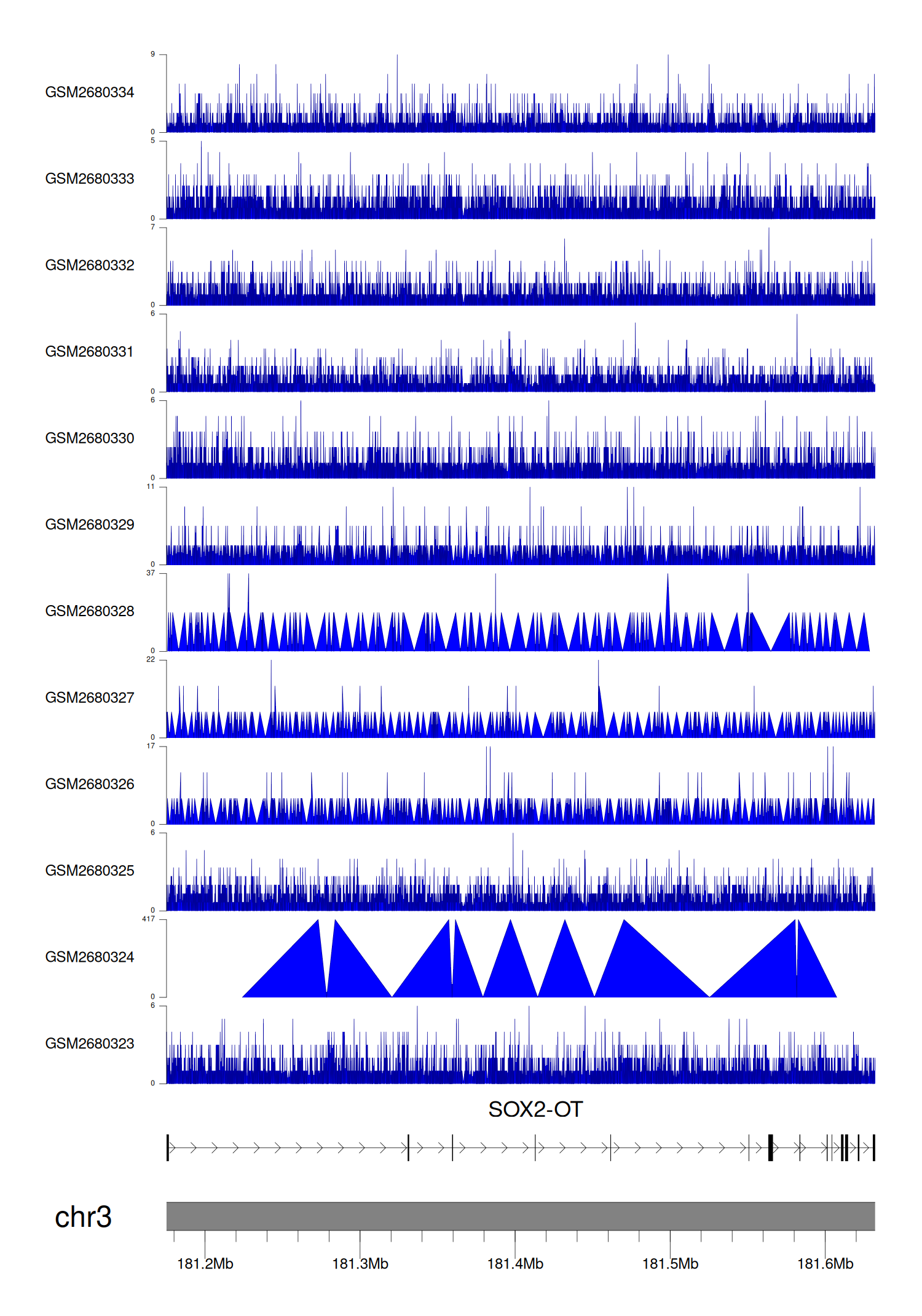 > Dataset: GSE100400 - SOX2-OT peak across samples