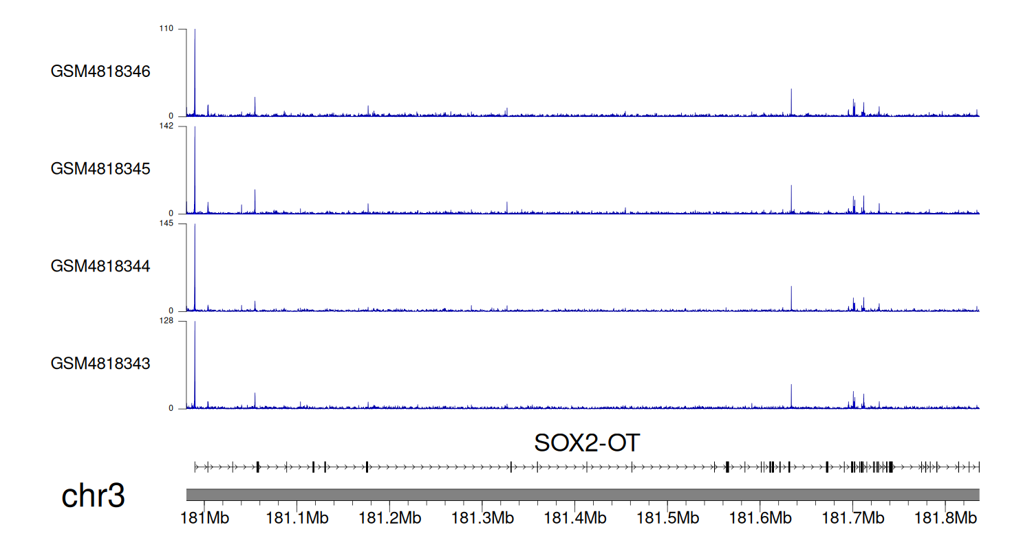 > Dataset: GSE131257 - SOX2-OT peak across samples