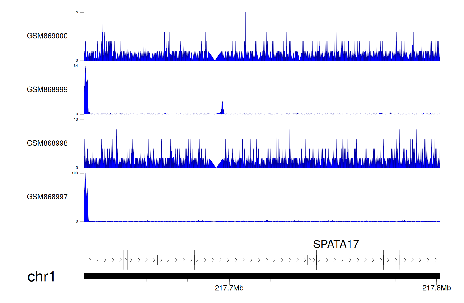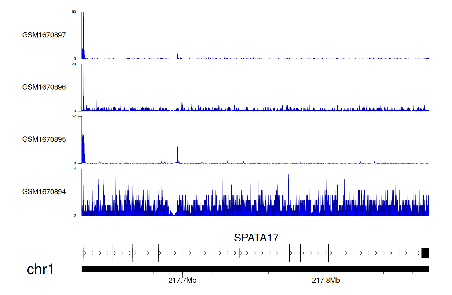 > Dataset: GSE68402 - SPATA17 peak across samples