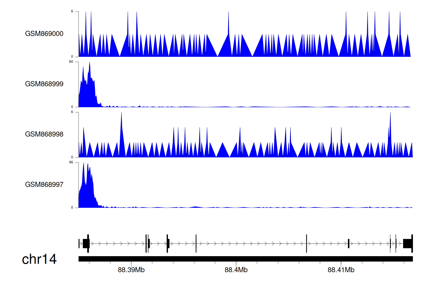 > Dataset: GSE68402 - SPATA7 peak across samples
