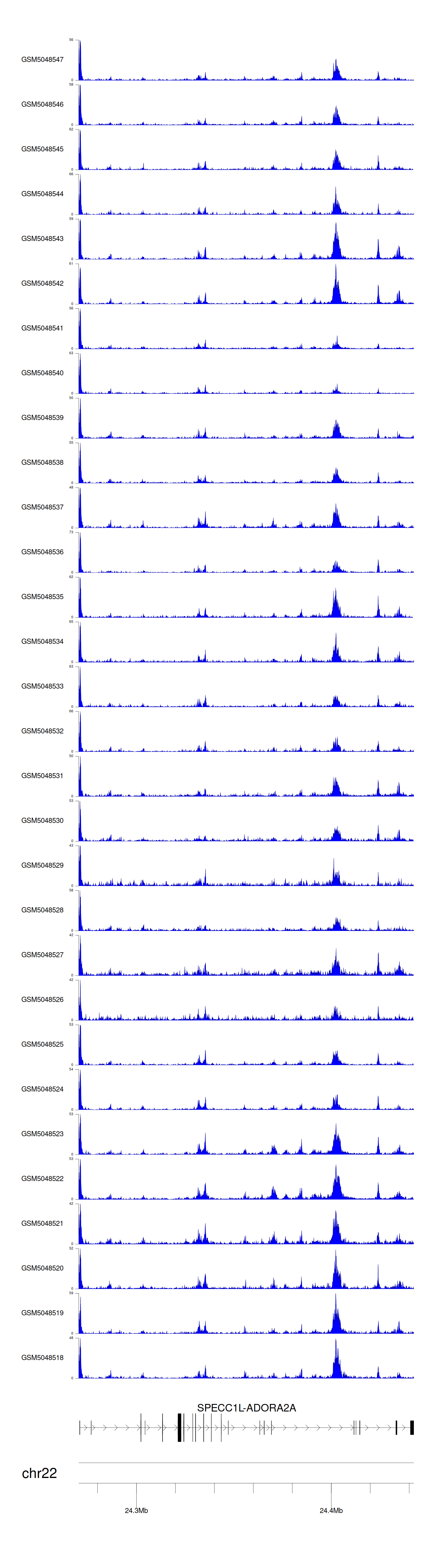 > Dataset: GSE220859 - SPECC1L-ADORA2A peak across samples