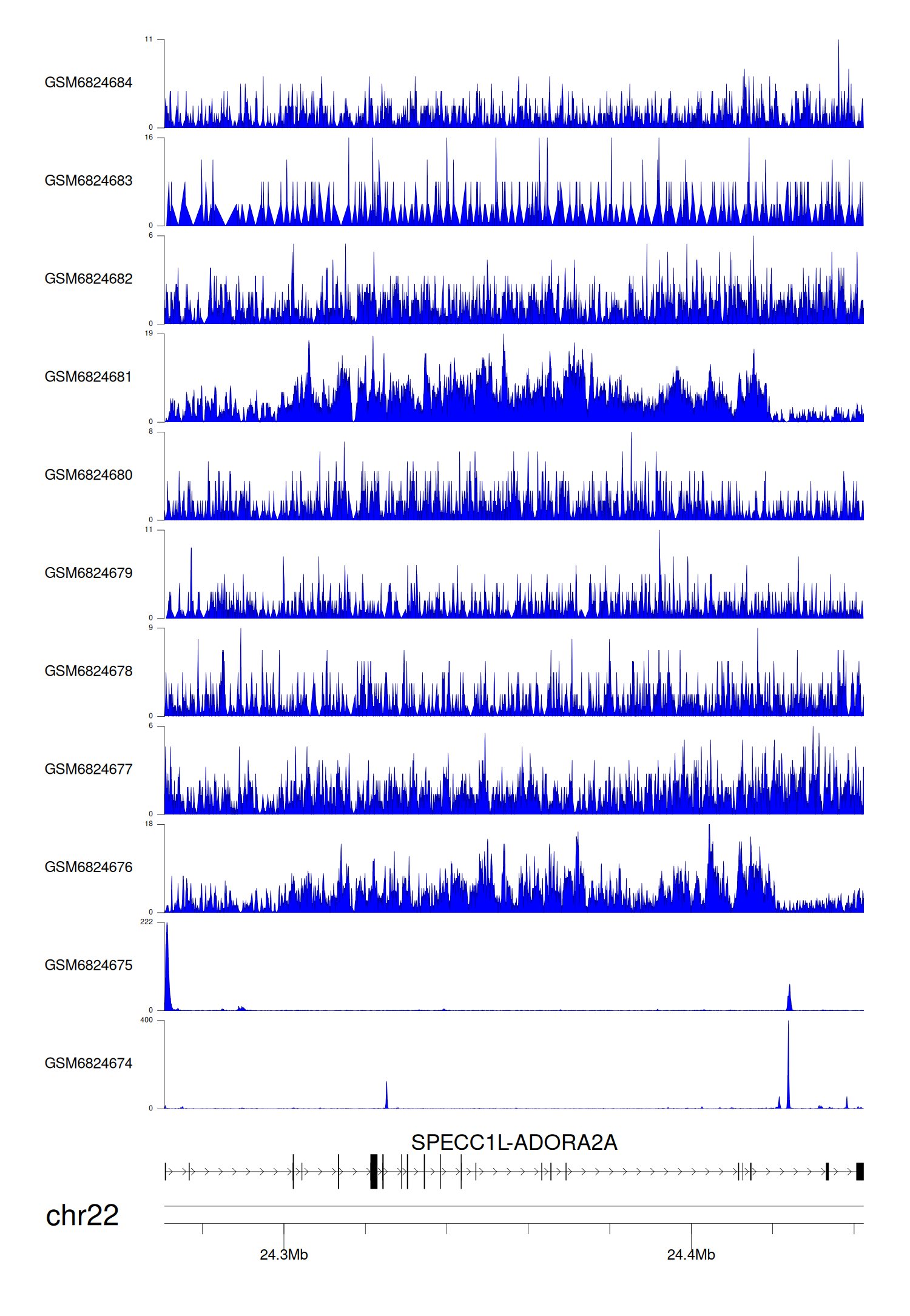> Dataset: GSE211651 - SPECC1L-ADORA2A peak across samples