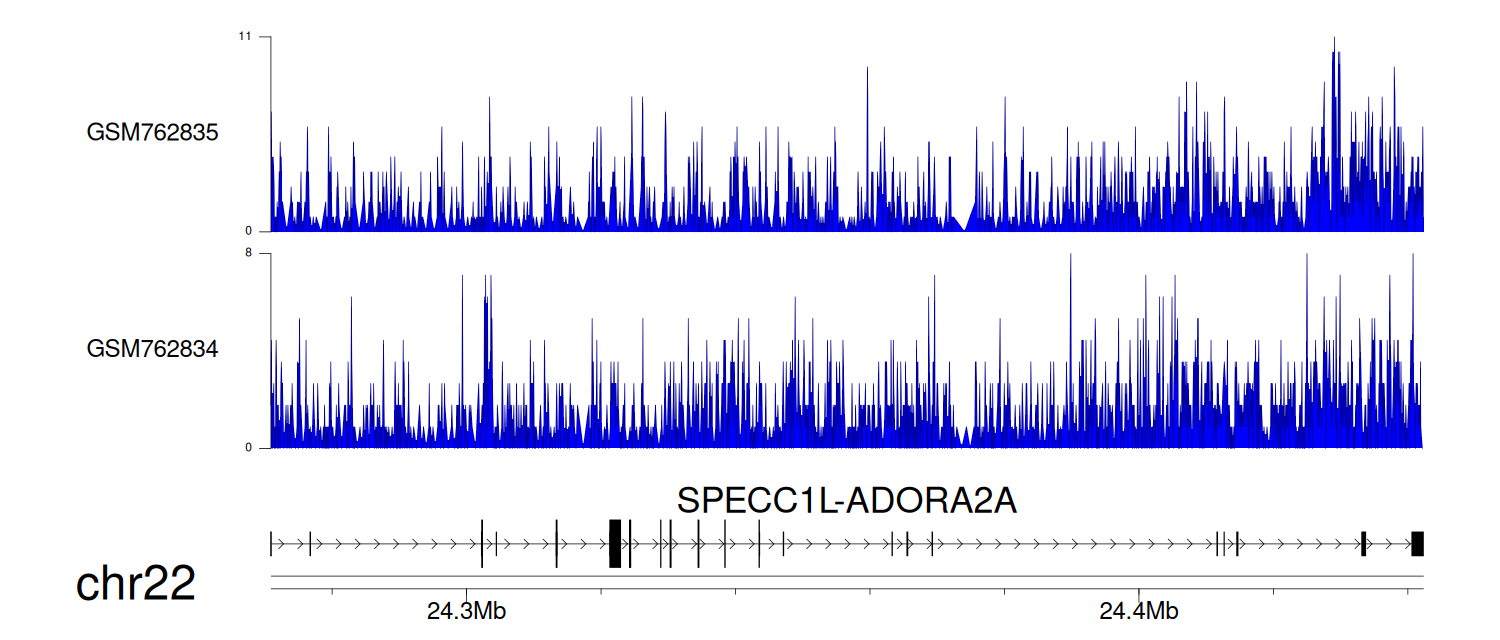 > Dataset: GSE30738 - SPECC1L-ADORA2A peak across samples