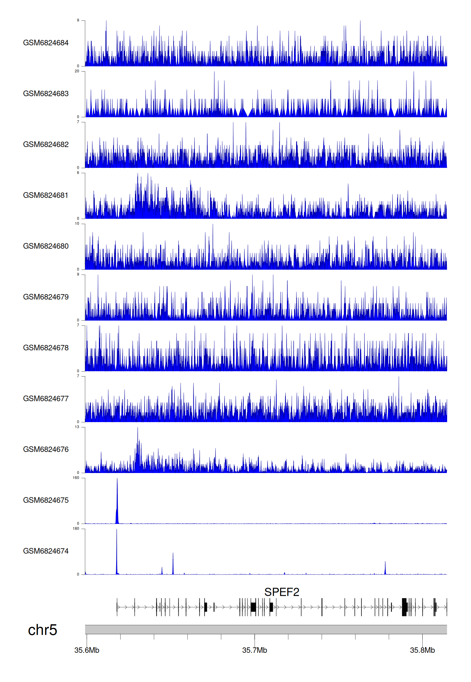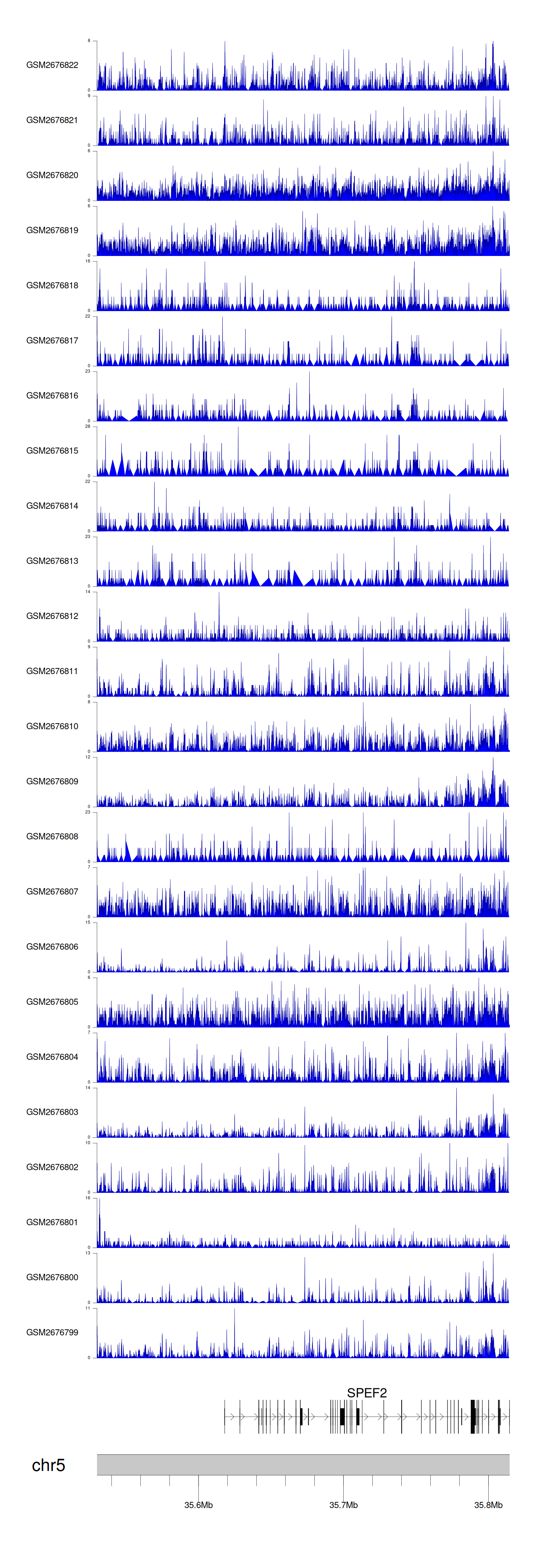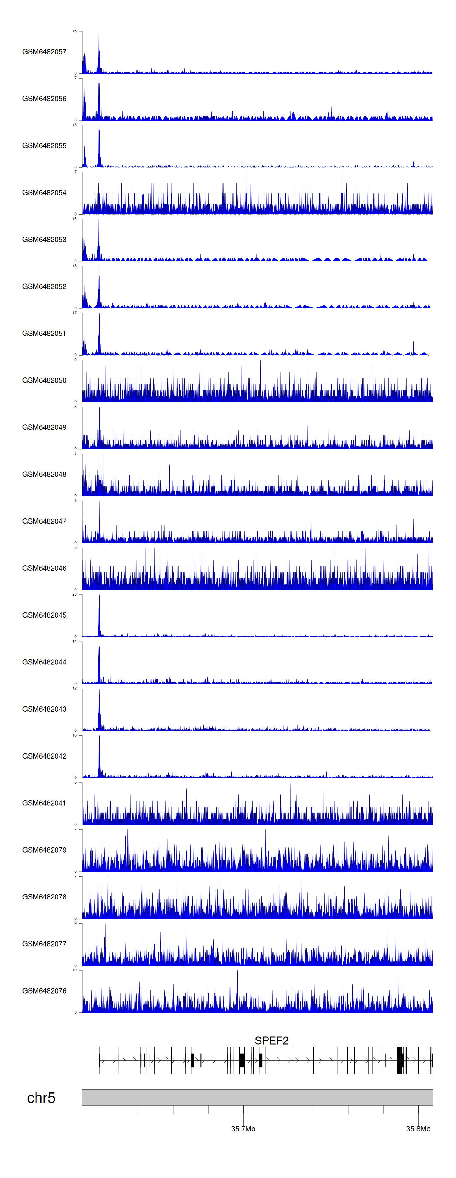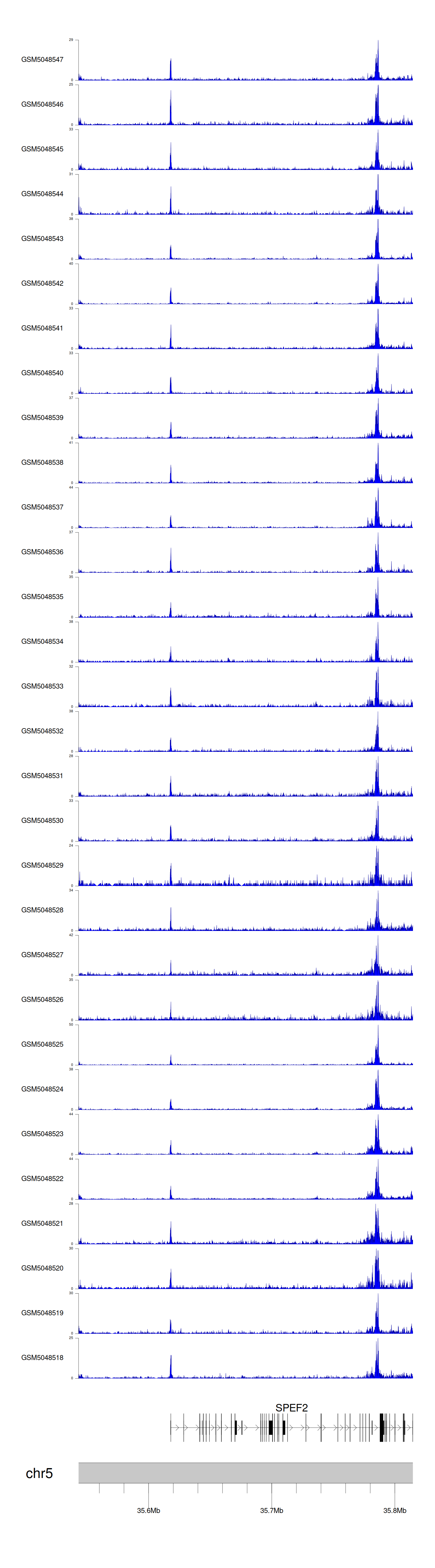 > Dataset: GSE165703 - SPEF2 peak across samples