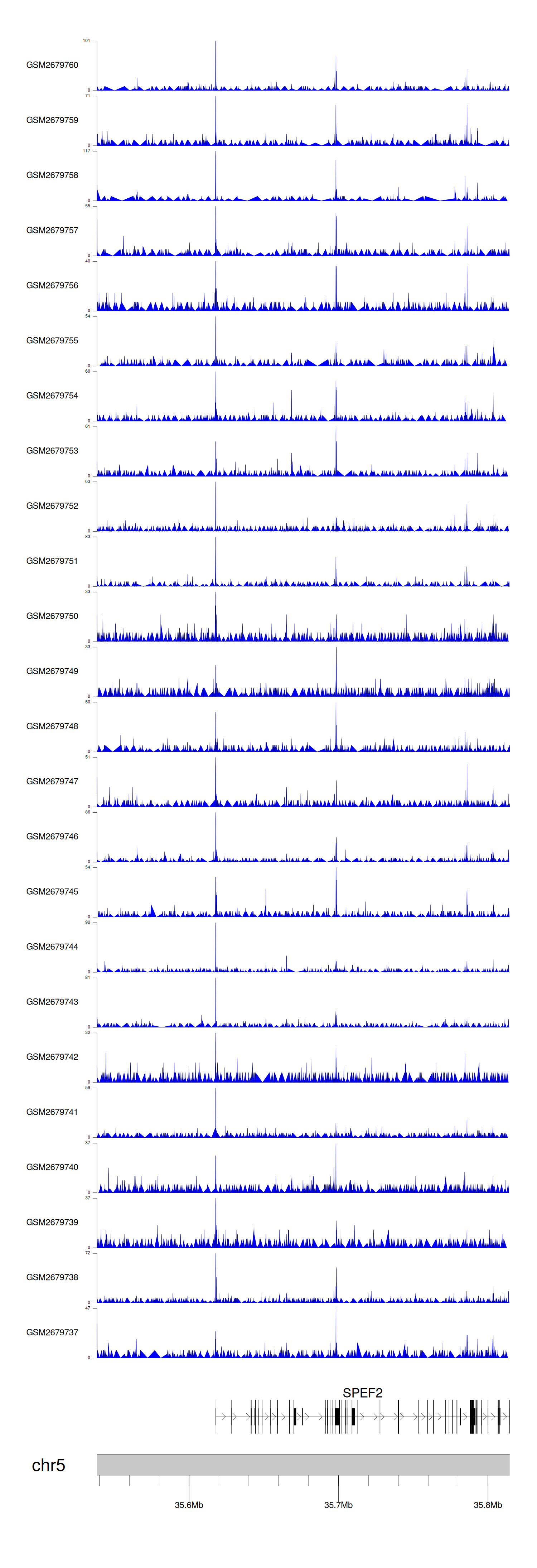 > Dataset: GSE100376 - SPEF2 peak across samples