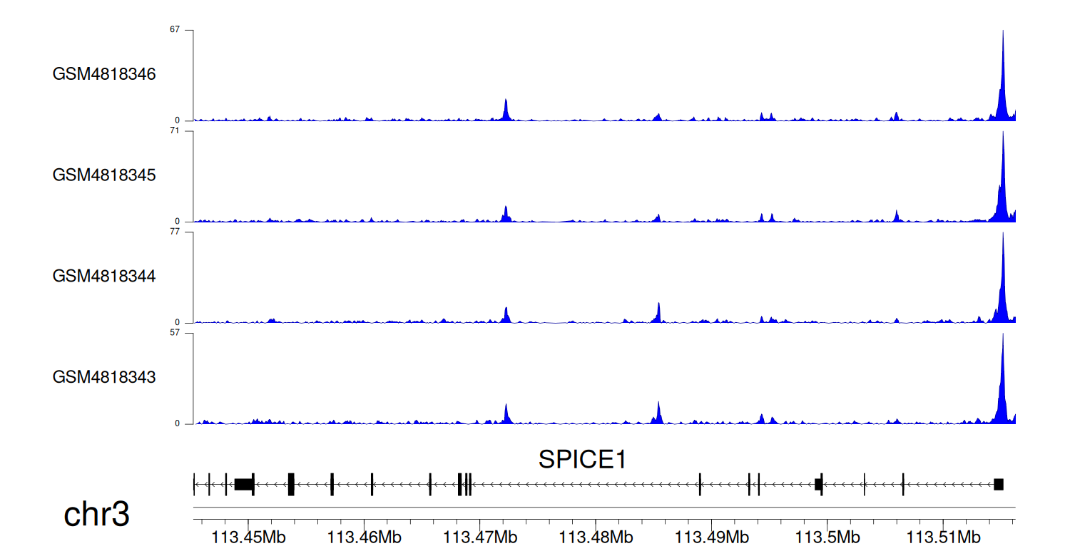 > Dataset: GSE270130 - SPICE1 peak across samples