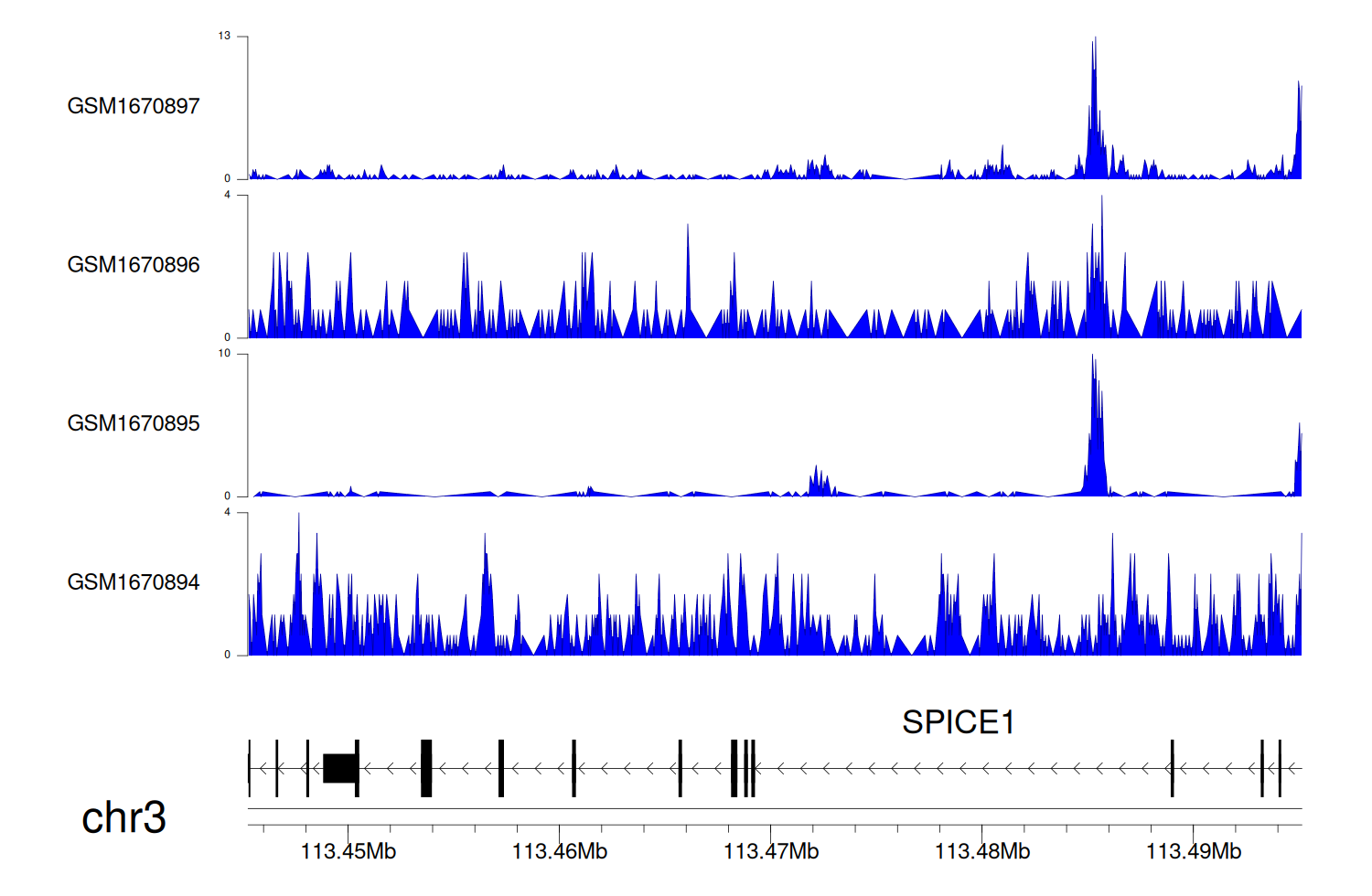 > Dataset: GSE68402 - SPICE1 peak across samples