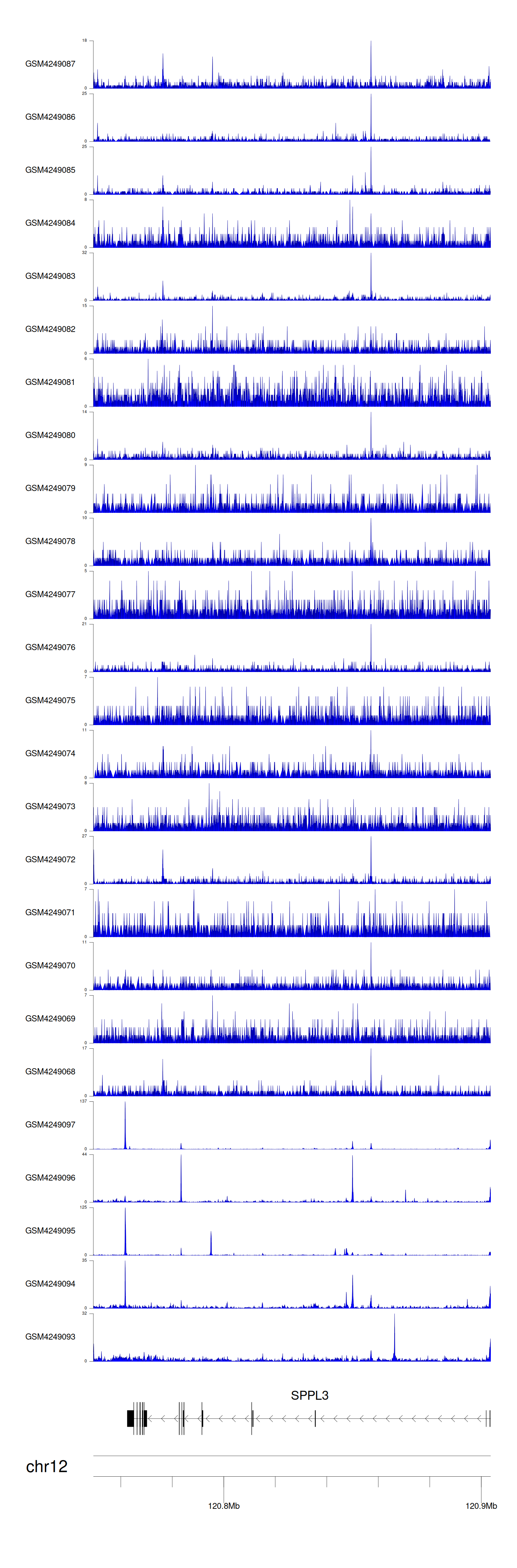 > Dataset: GSE143026 - SPPL3 peak across samples