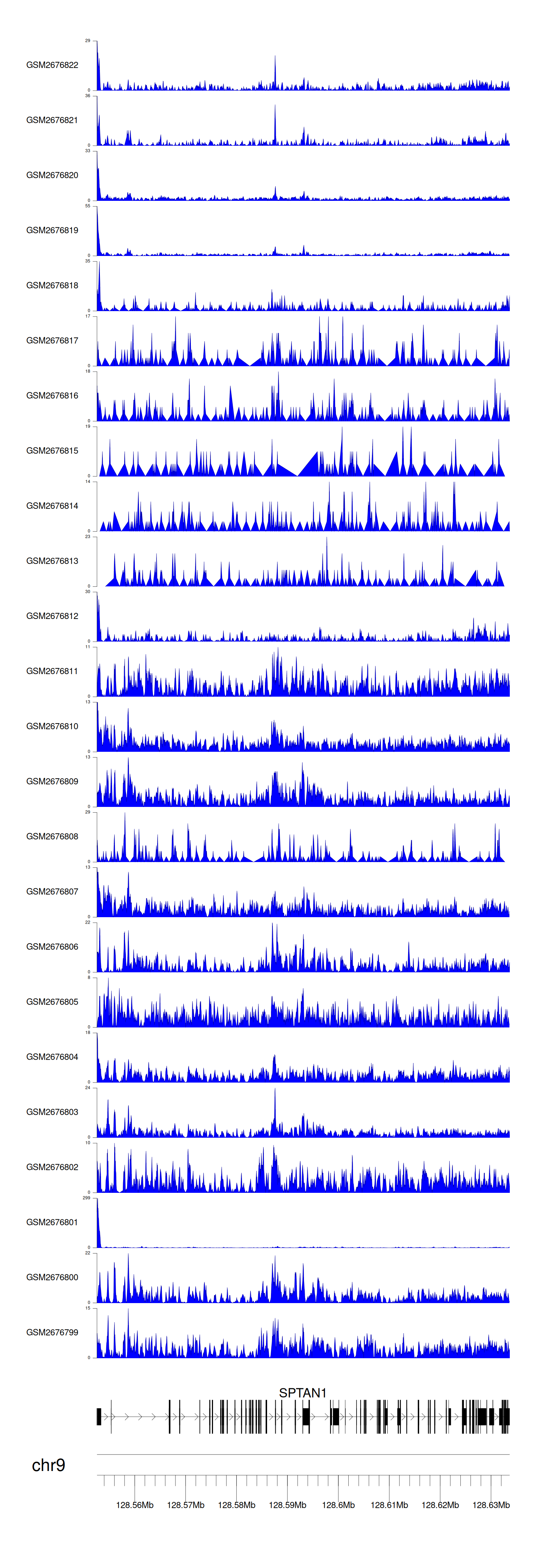 > Dataset: GSE100376 - SPTAN1 peak across samples