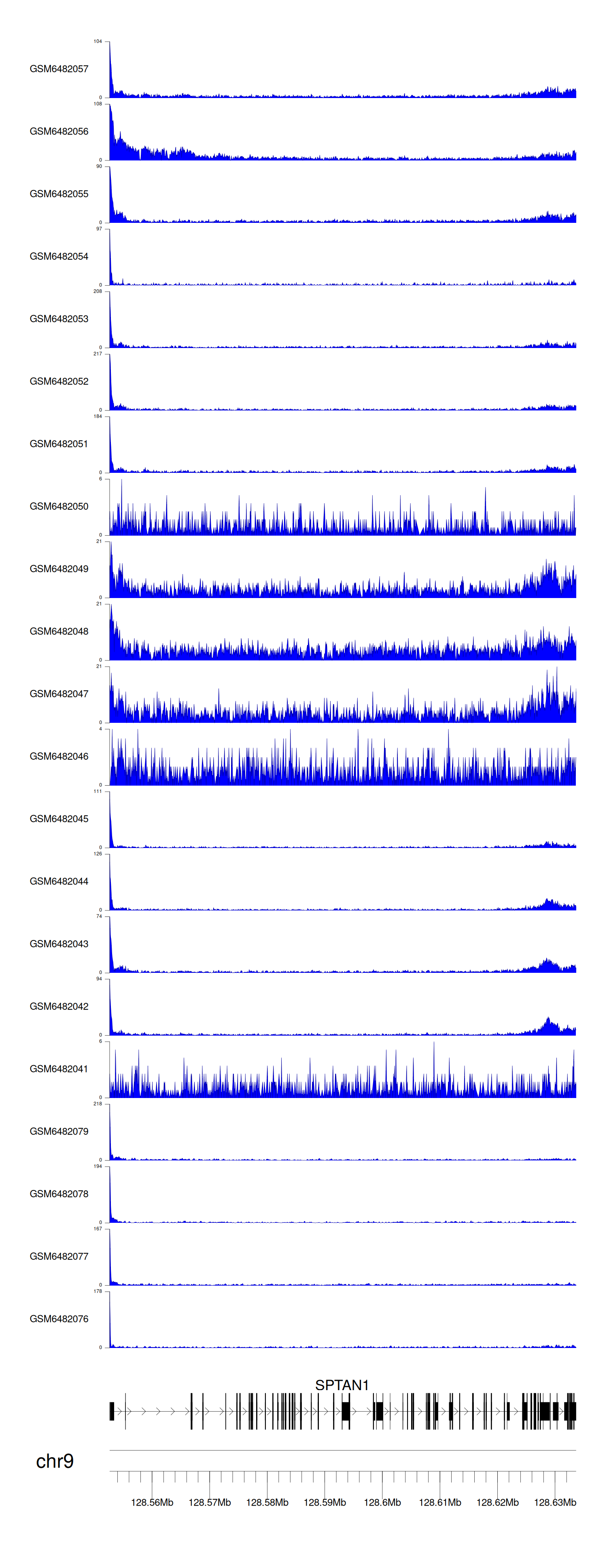 > Dataset: GSE144329 - SPTAN1 peak across samples