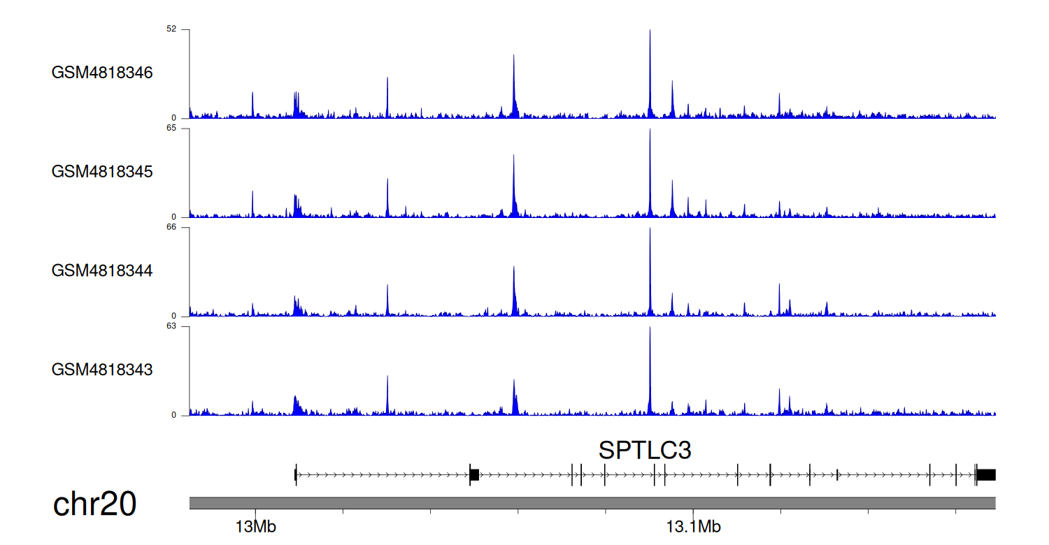 > Dataset: GSE131257 - SPTLC3 peak across samples
