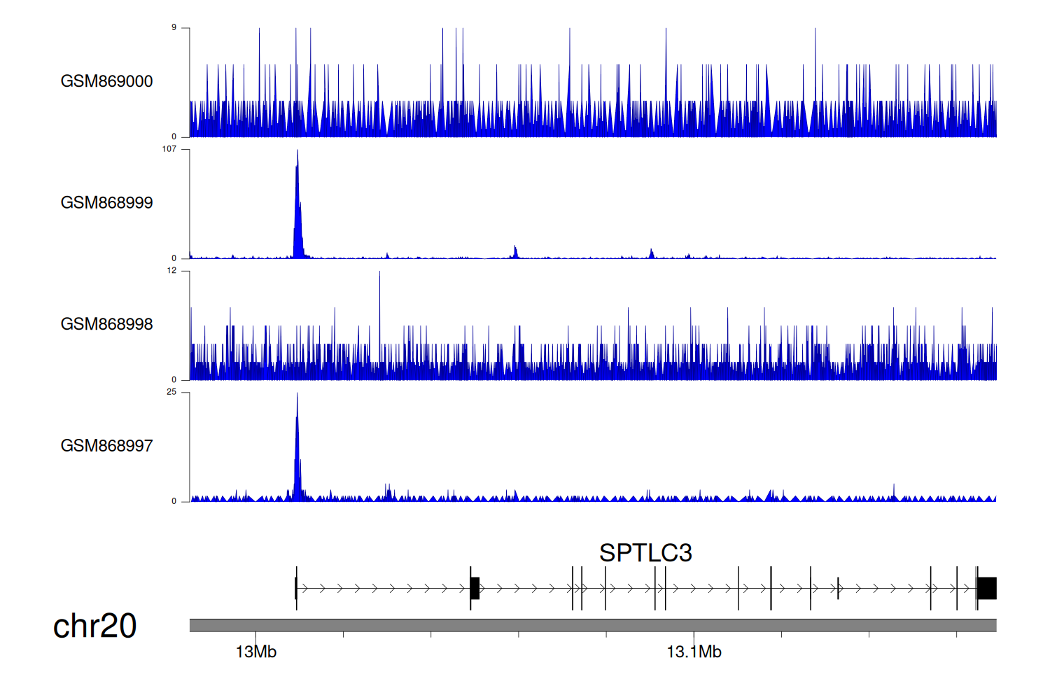 > Dataset: GSE100400 - SPTLC3 peak across samples