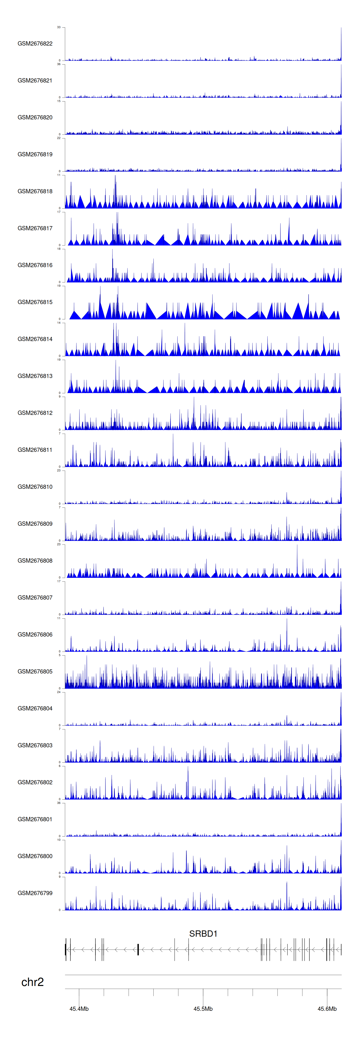 > Dataset: GSE100376 - SRBD1 peak across samples