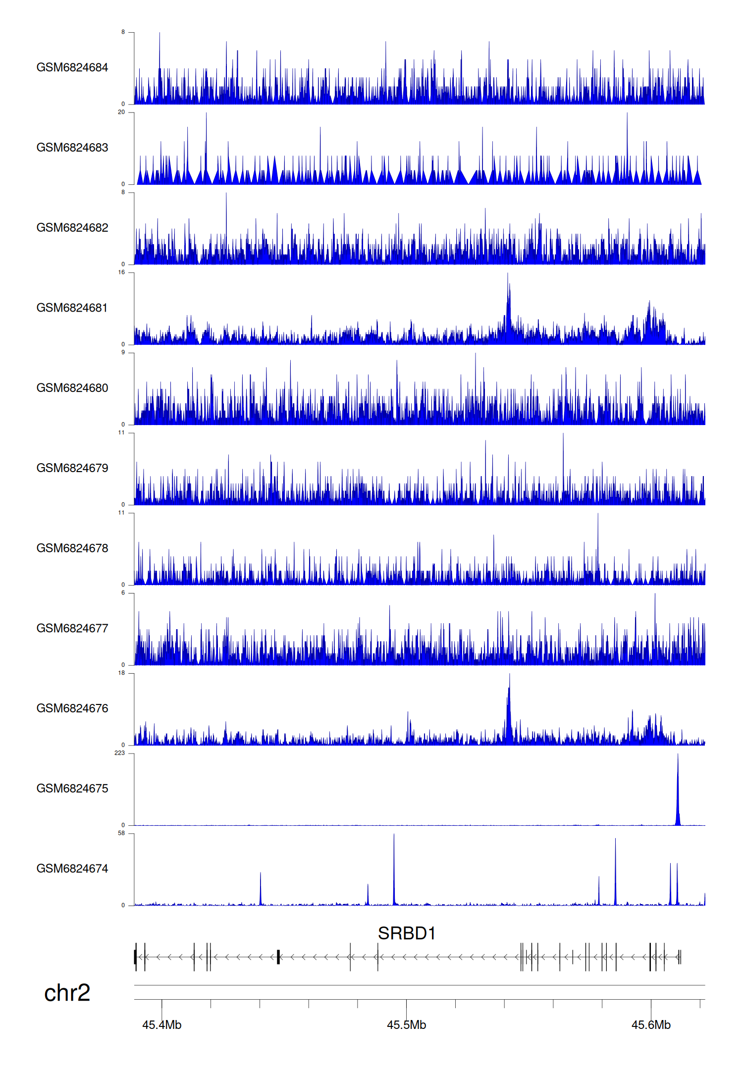 > Dataset: GSE144329 - SRBD1 peak across samples