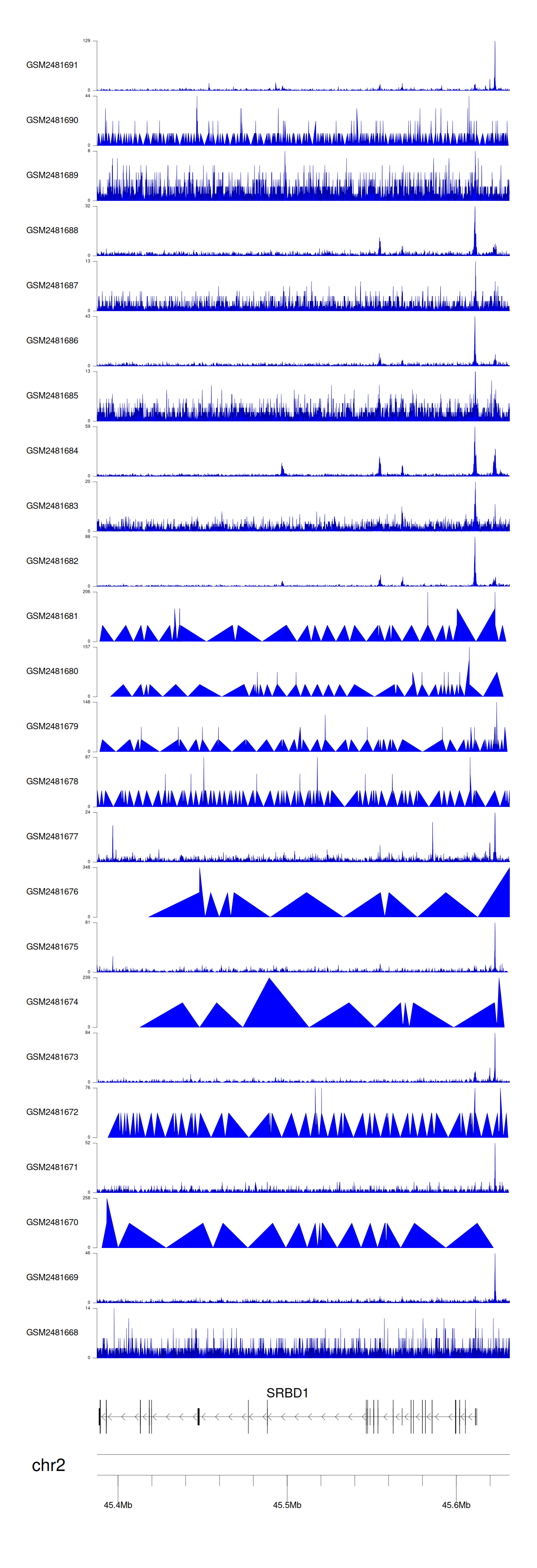> Dataset: GSE94732 - SRBD1 peak across samples