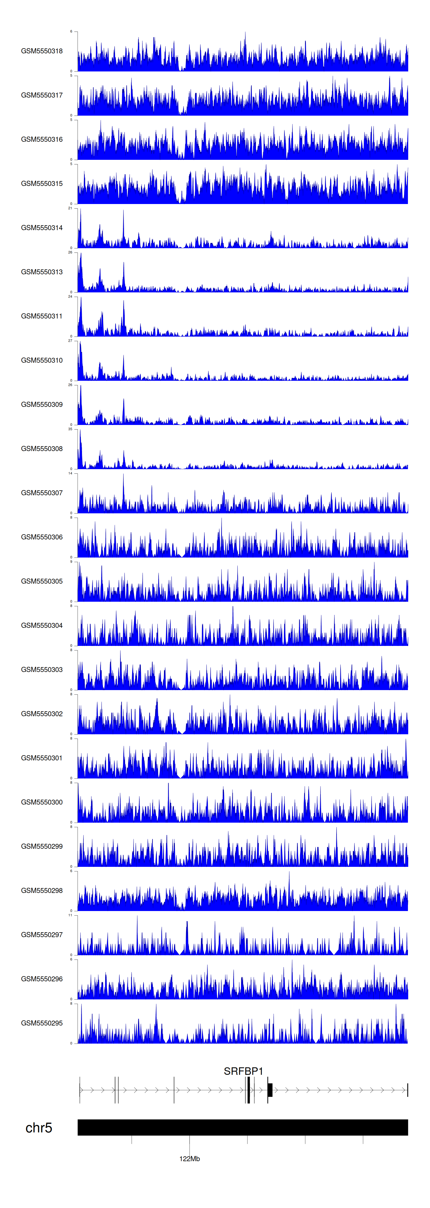 > Dataset: GSE143026 - SRFBP1 peak across samples