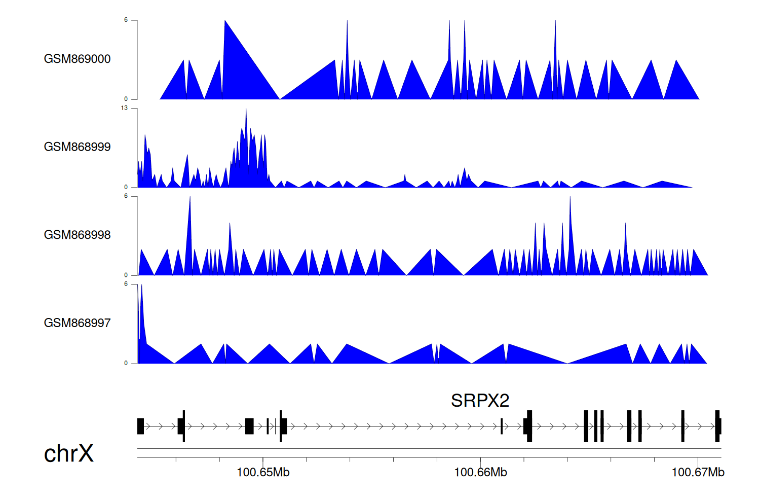 > Dataset: GSE68402 - SRPX2 peak across samples