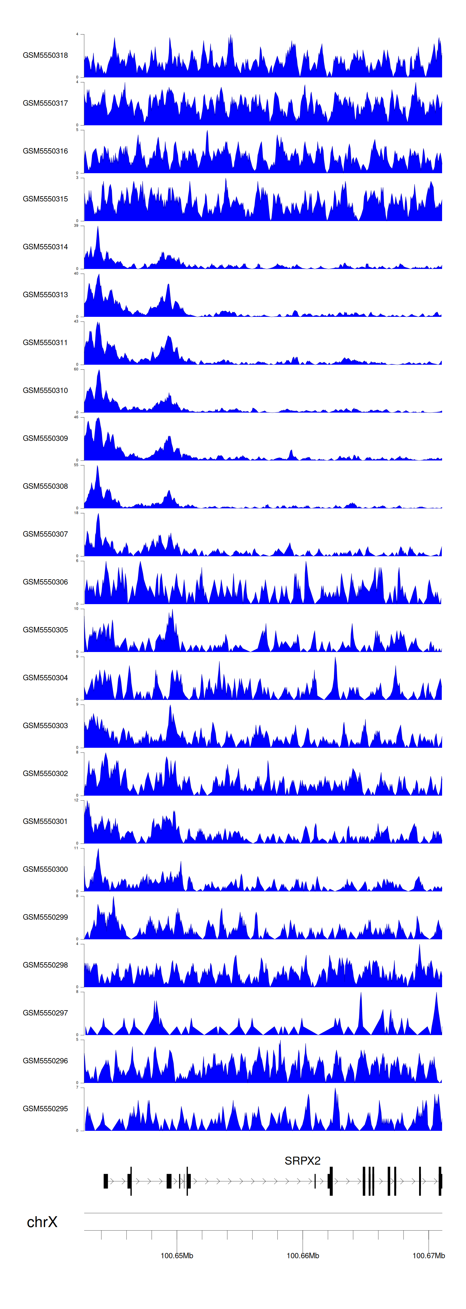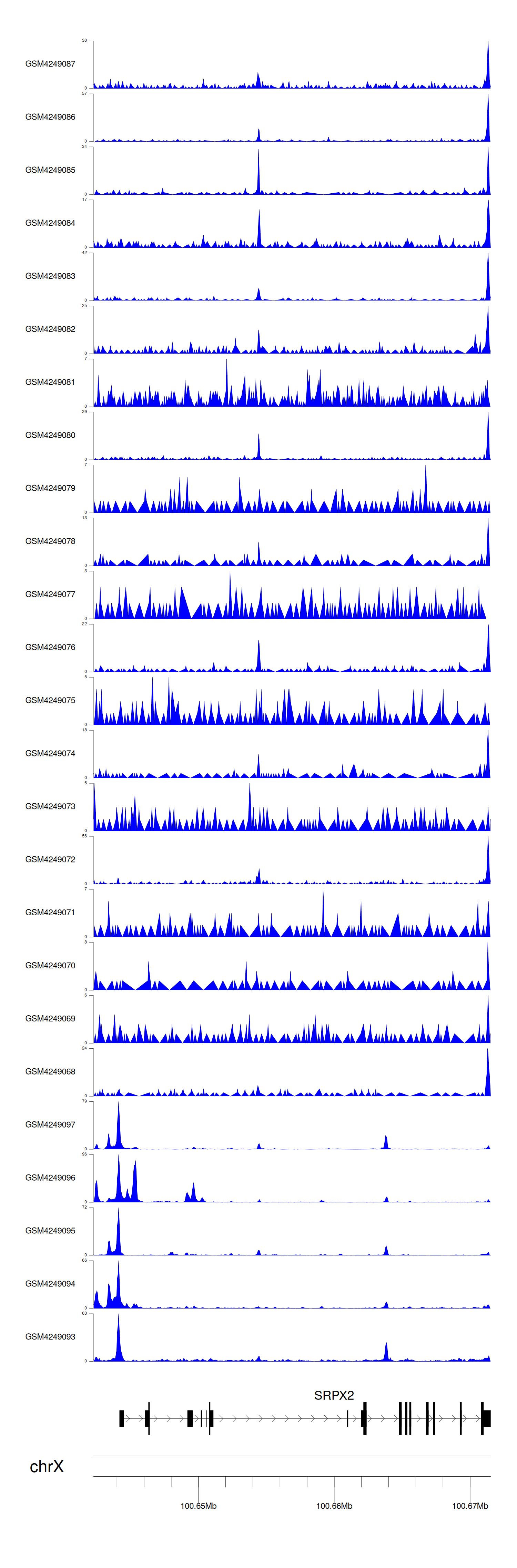 > Dataset: GSE143026 - SRPX2 peak across samples
