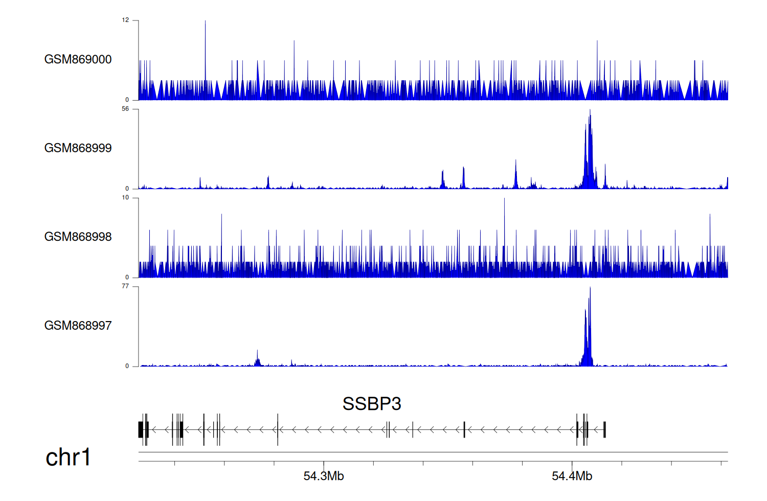 > Dataset: GSE68402 - SSBP3 peak across samples
